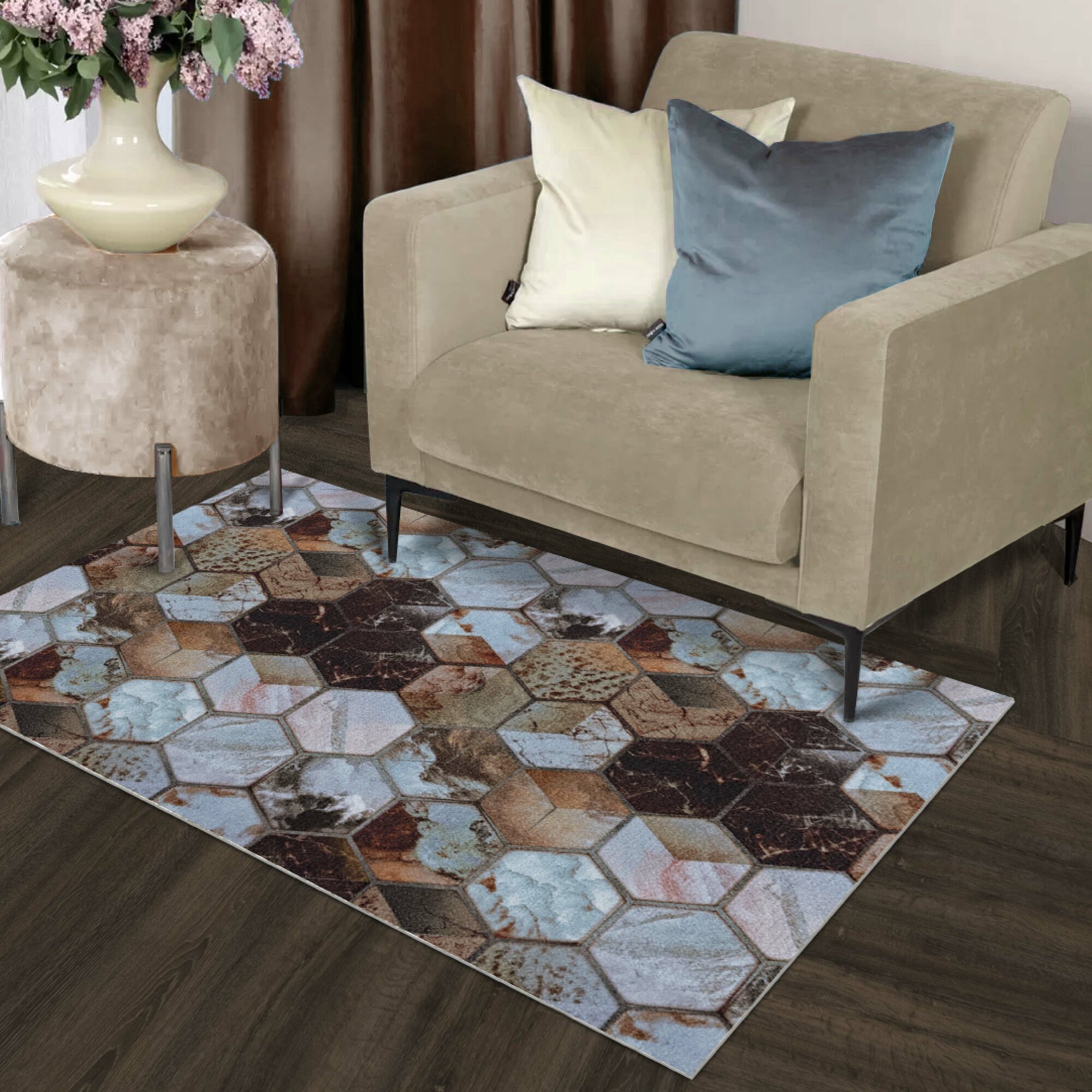 Вырезной придверный коврик. Коврик в прихожую антискользящий влаговпитывающий PRINT 150х200 Соты Дерево с мрамором 110