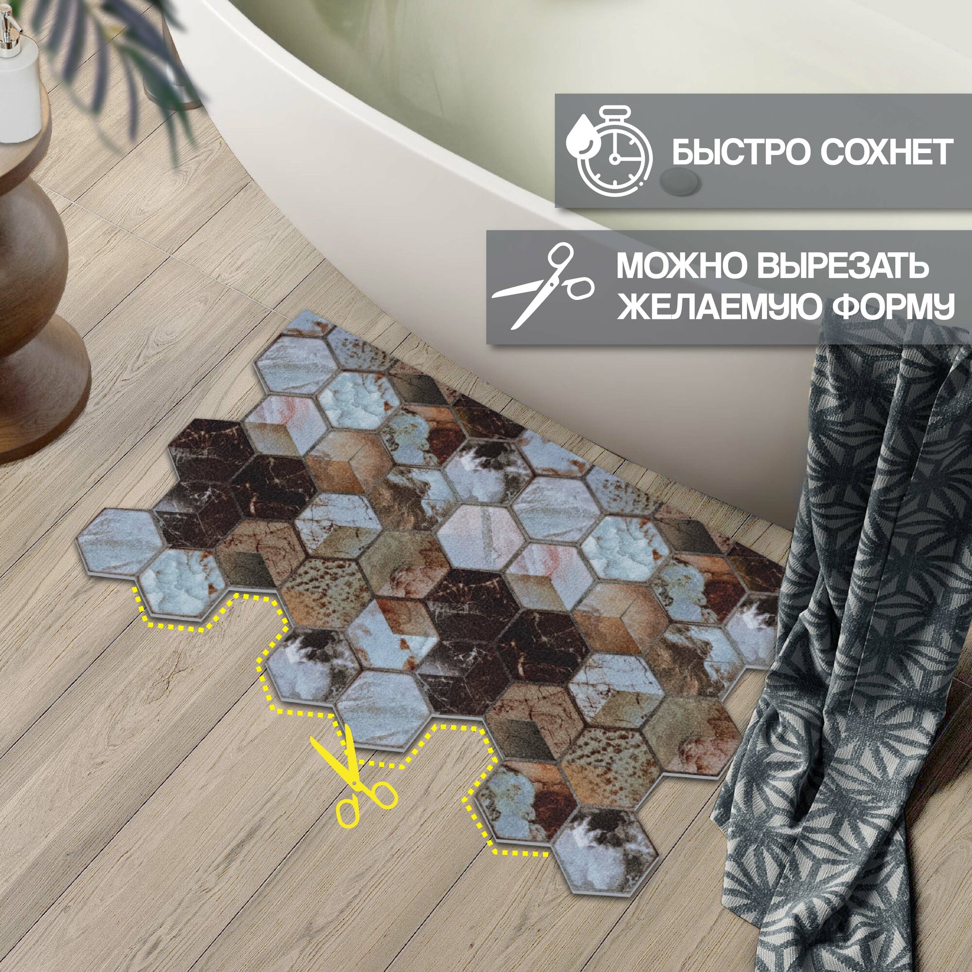 Коврик вырезной Icarpet PRINT антискользящий влаговпитывающий 60х100 Соты Дерево с мрамором 110