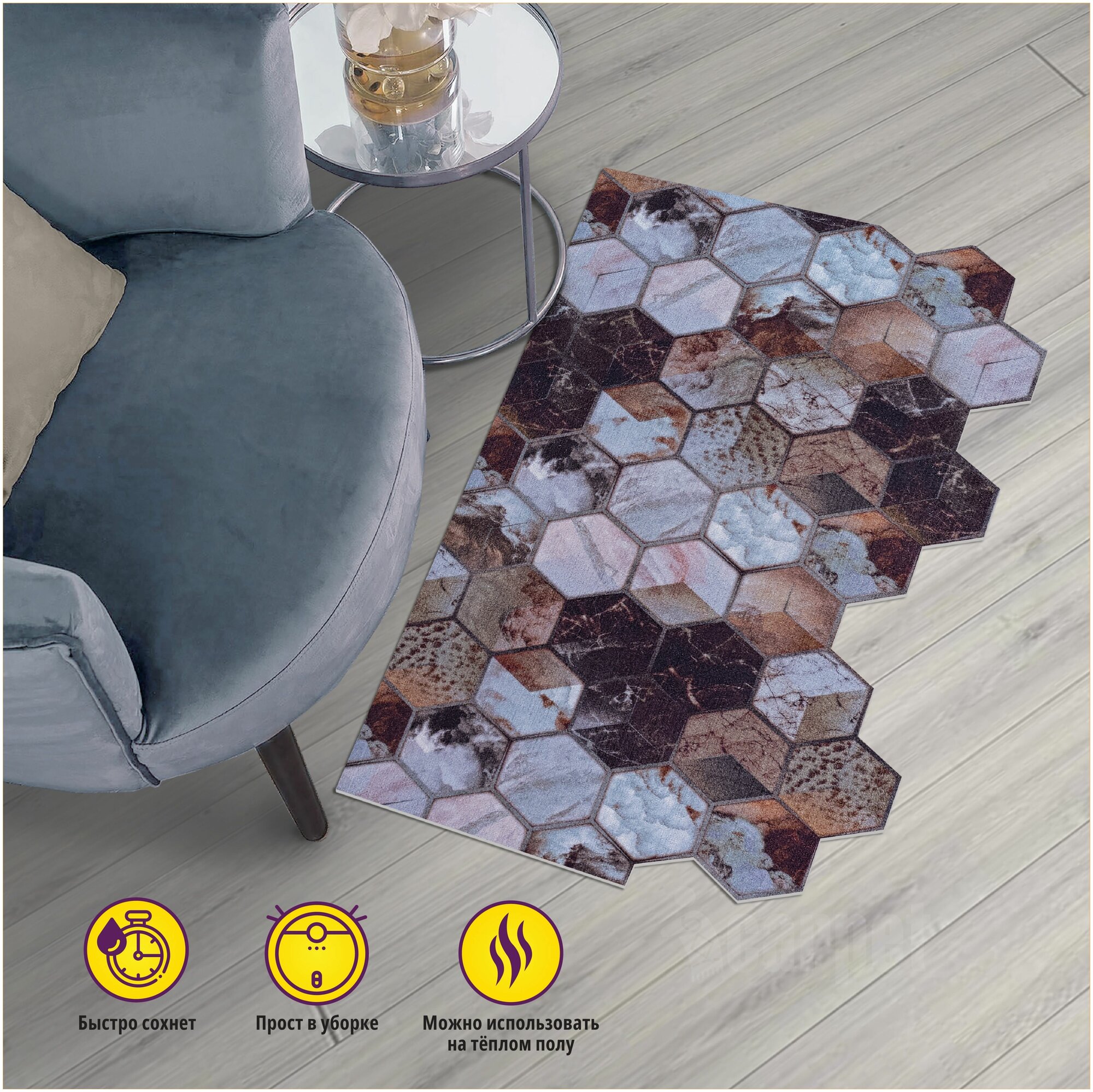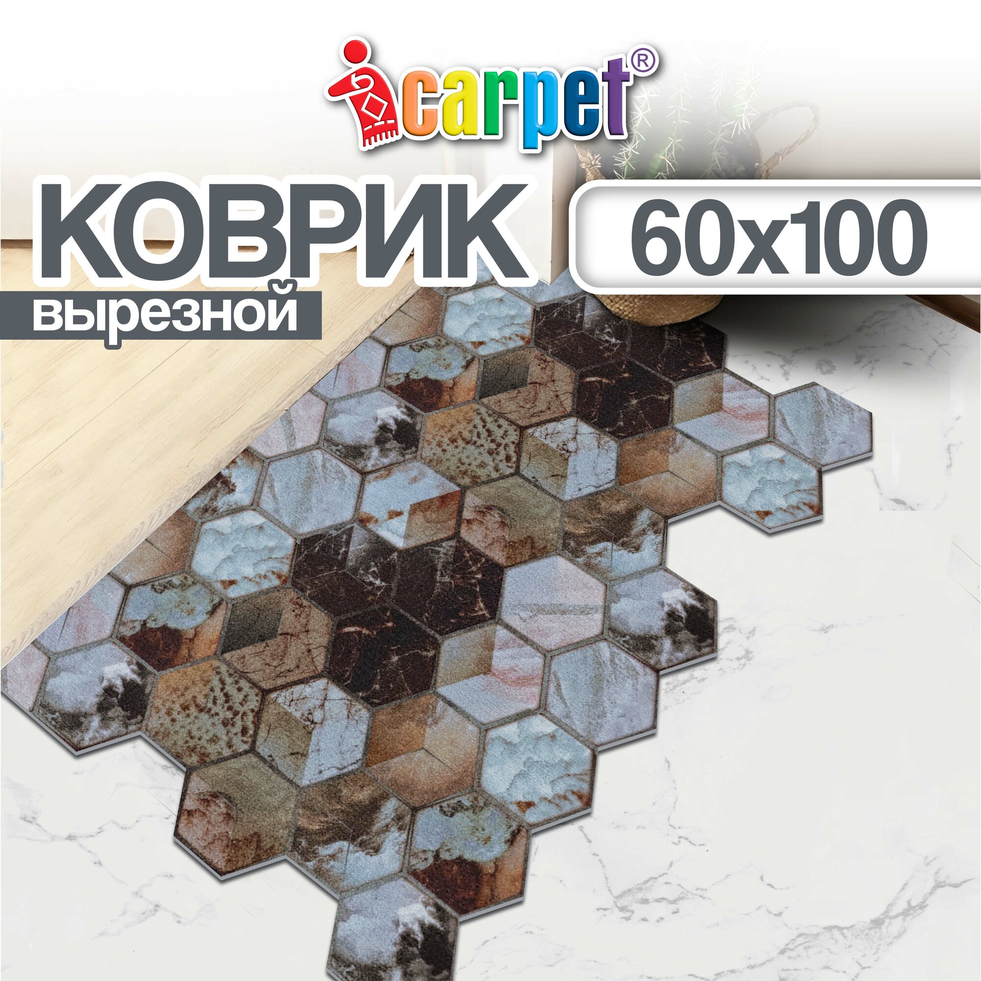 Коврик вырезной придверны Icarpet PRINT антискользящий влаговпитывающий/ 60х100 см/Соты 3D Микс 125, коврик для кухни, для ванной