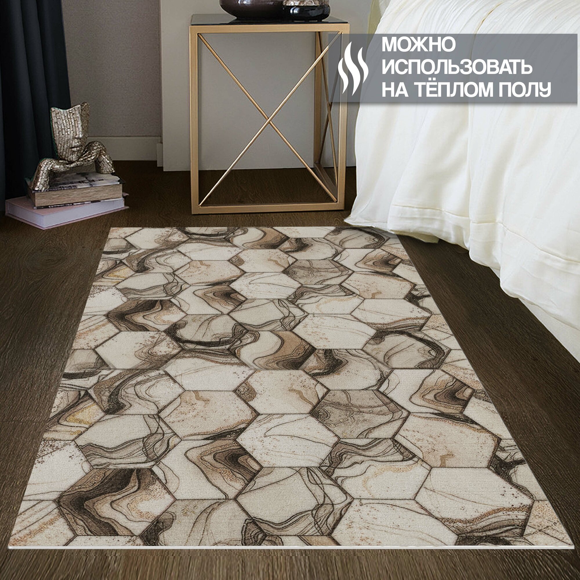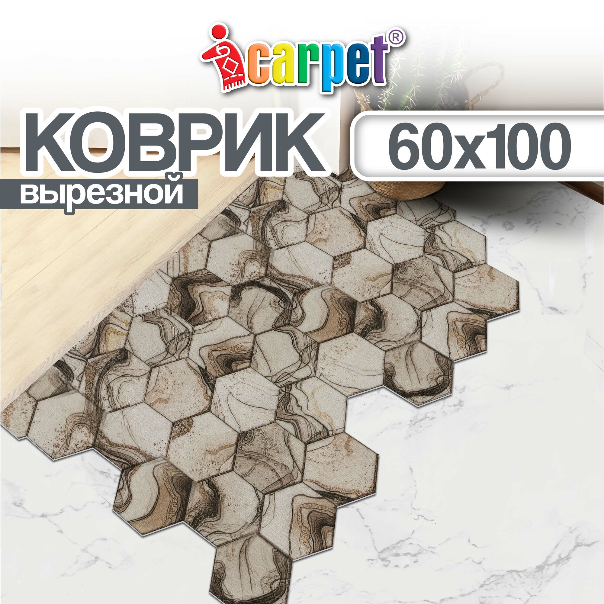 СохранитьКоврик вырезной прикроватный, придверный Icarpet PRINT антискользящий влаговпитывающий/ 60х100 см/ Соты Мрамор бежевый 105, коврик для ванной, для кухни интересное: