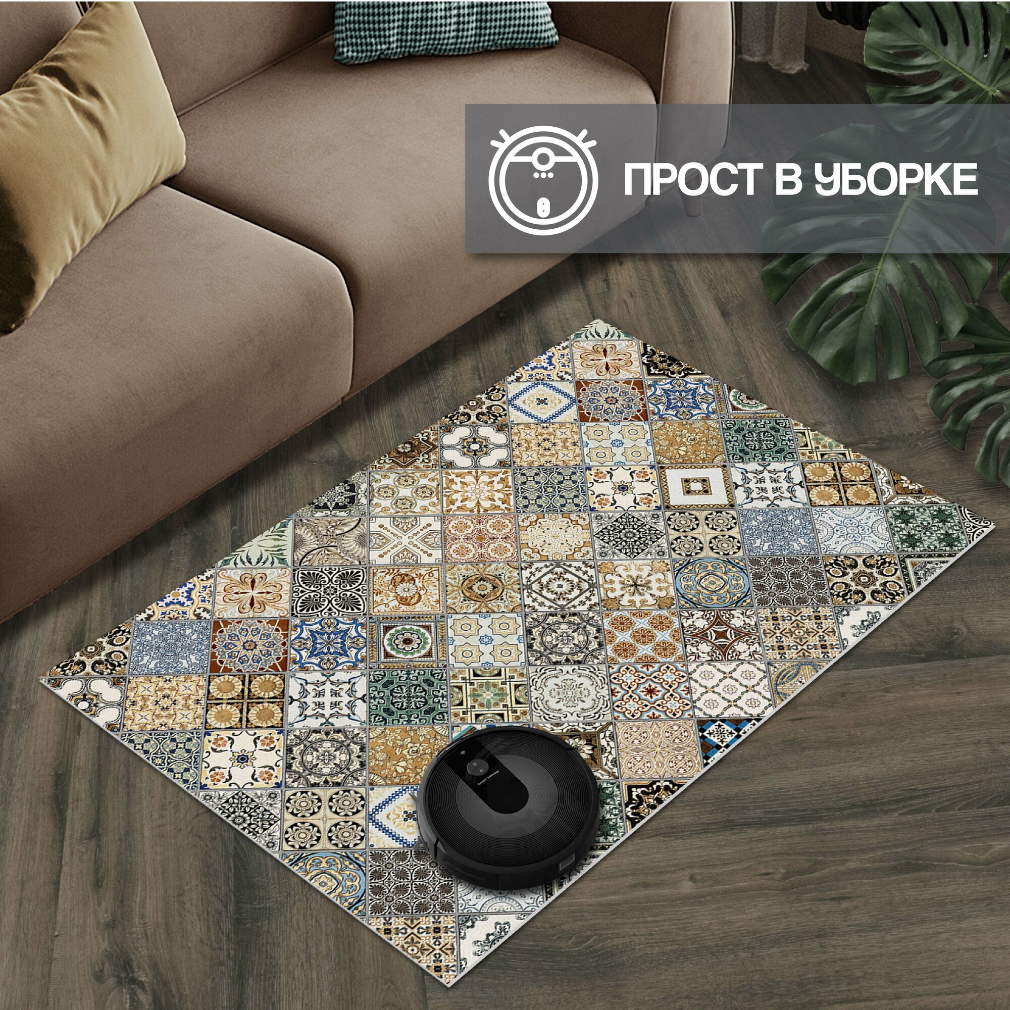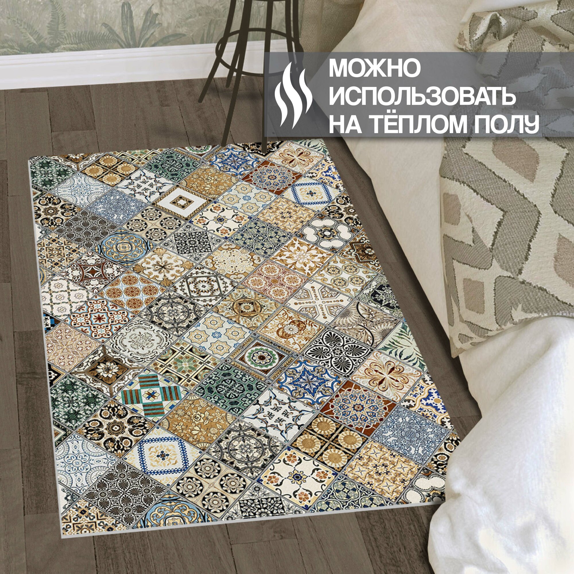 Коврик придверный вырезной PRINT/ 100х150 см/ Плитка Тоскана мультиколор, коврик прикроватный, коврик для кухни, для ванной.
