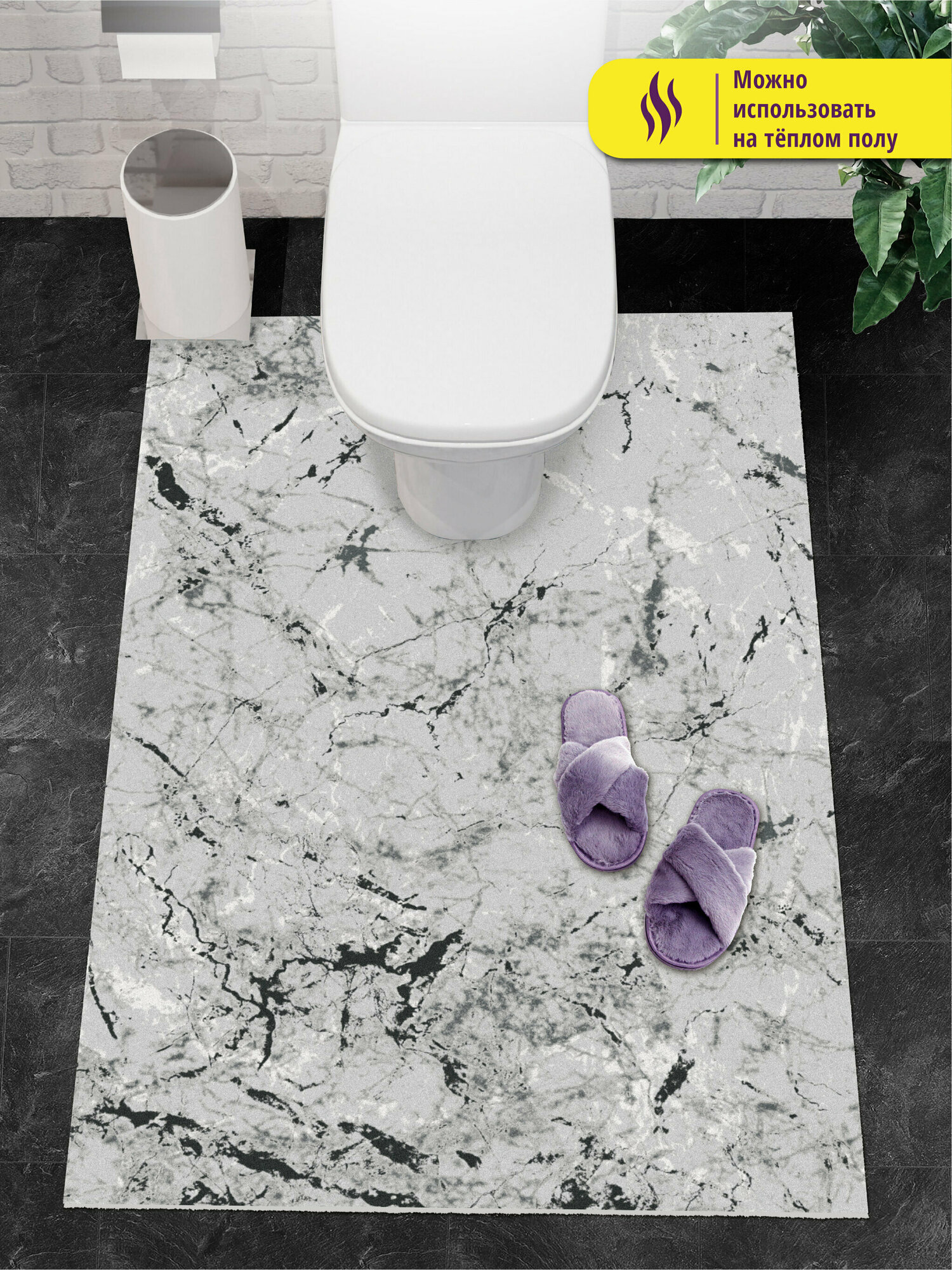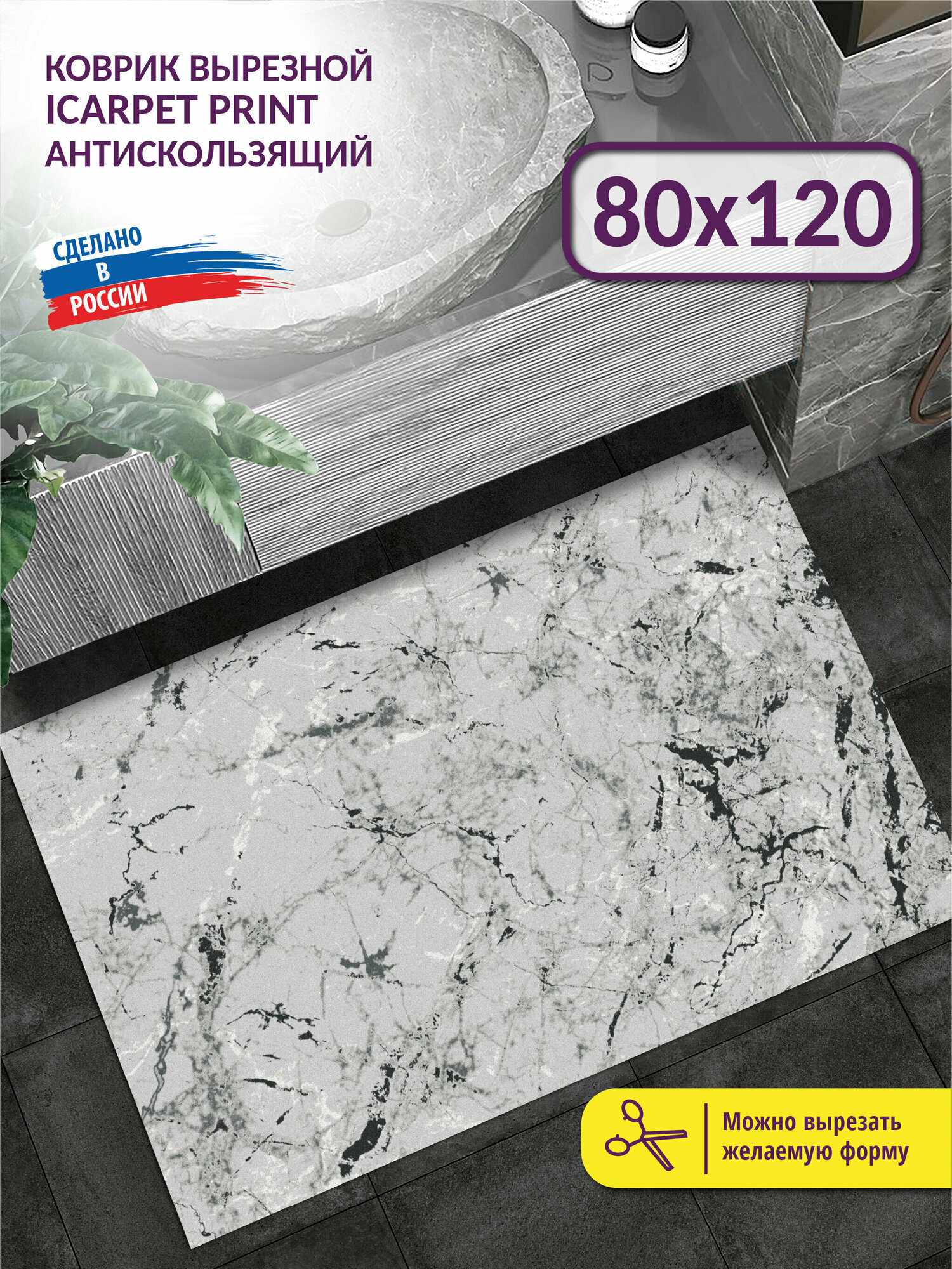 Купить Коврик вырезной, придверный Icarpet PRINT /Размер 80х120 см/Итальянский мрамор серый, коврик для ванной, прикроватный серый коврик