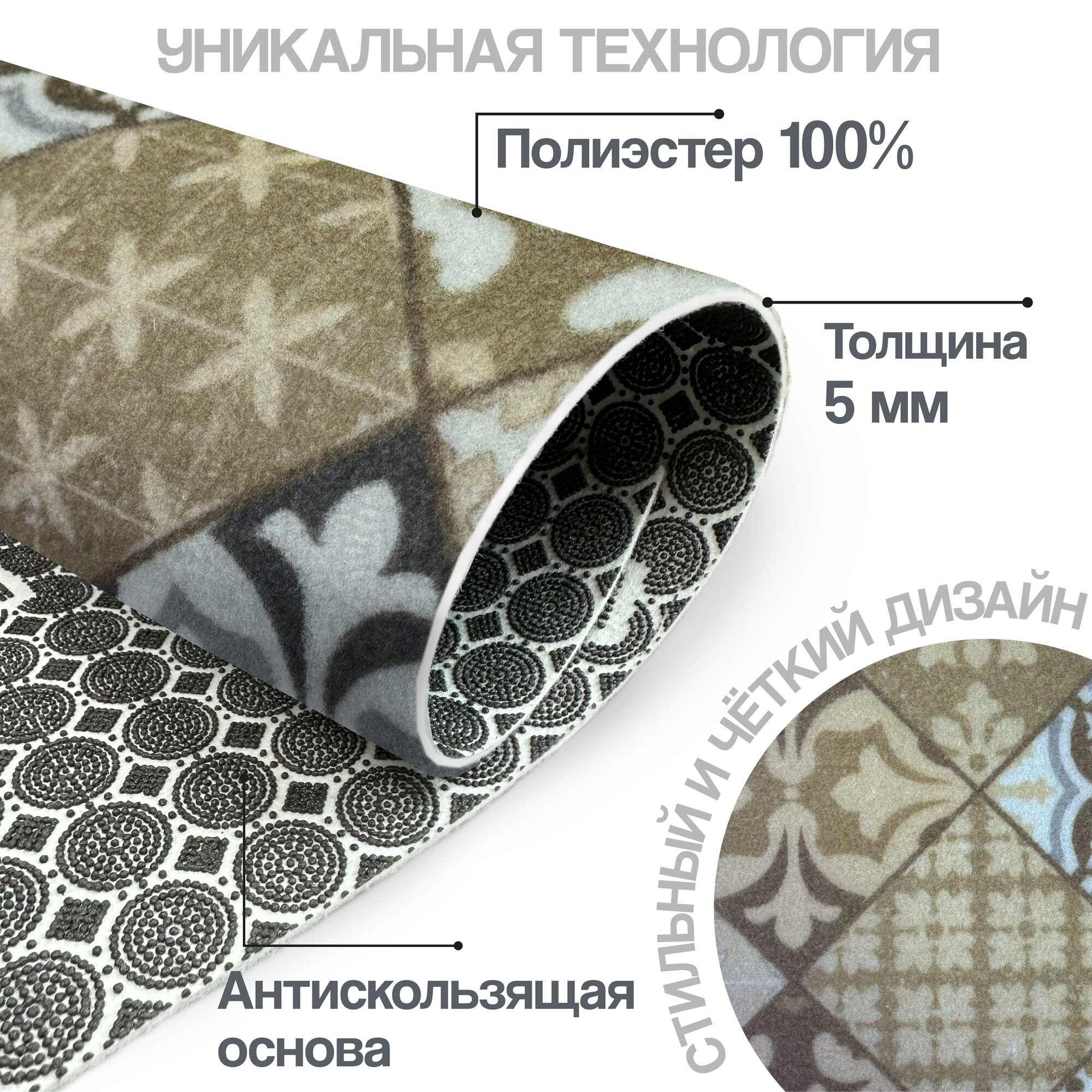 СохранитьКоврик придверный , прикроватный вырезной Icarpet PRINT антискользящий влаговпитывающий/ 60х100 см/ Плитка Карфаген бежевый с серым 137,коврик для кухни, для ванной интересное: