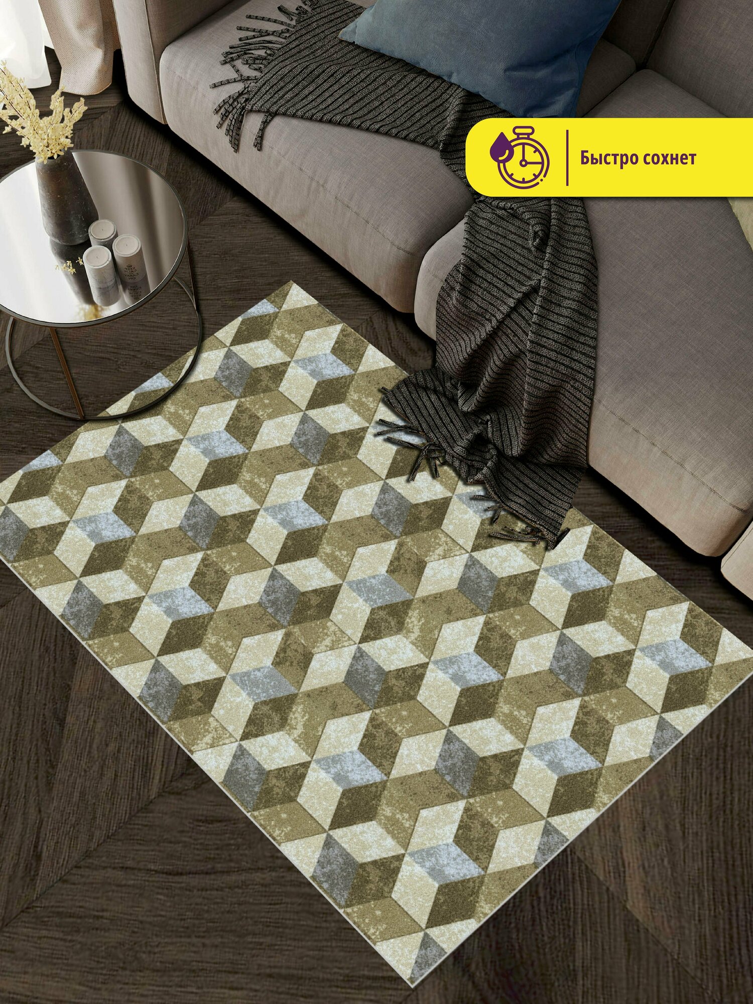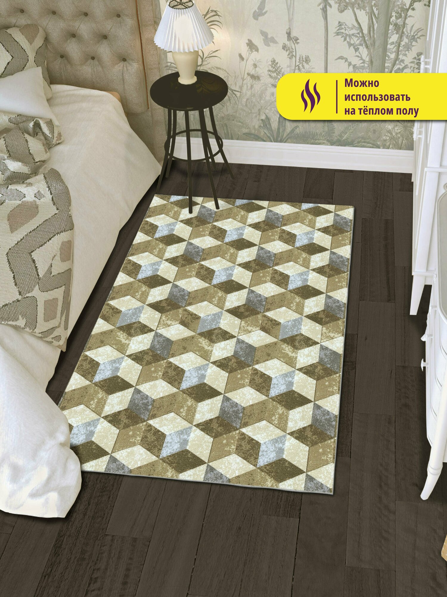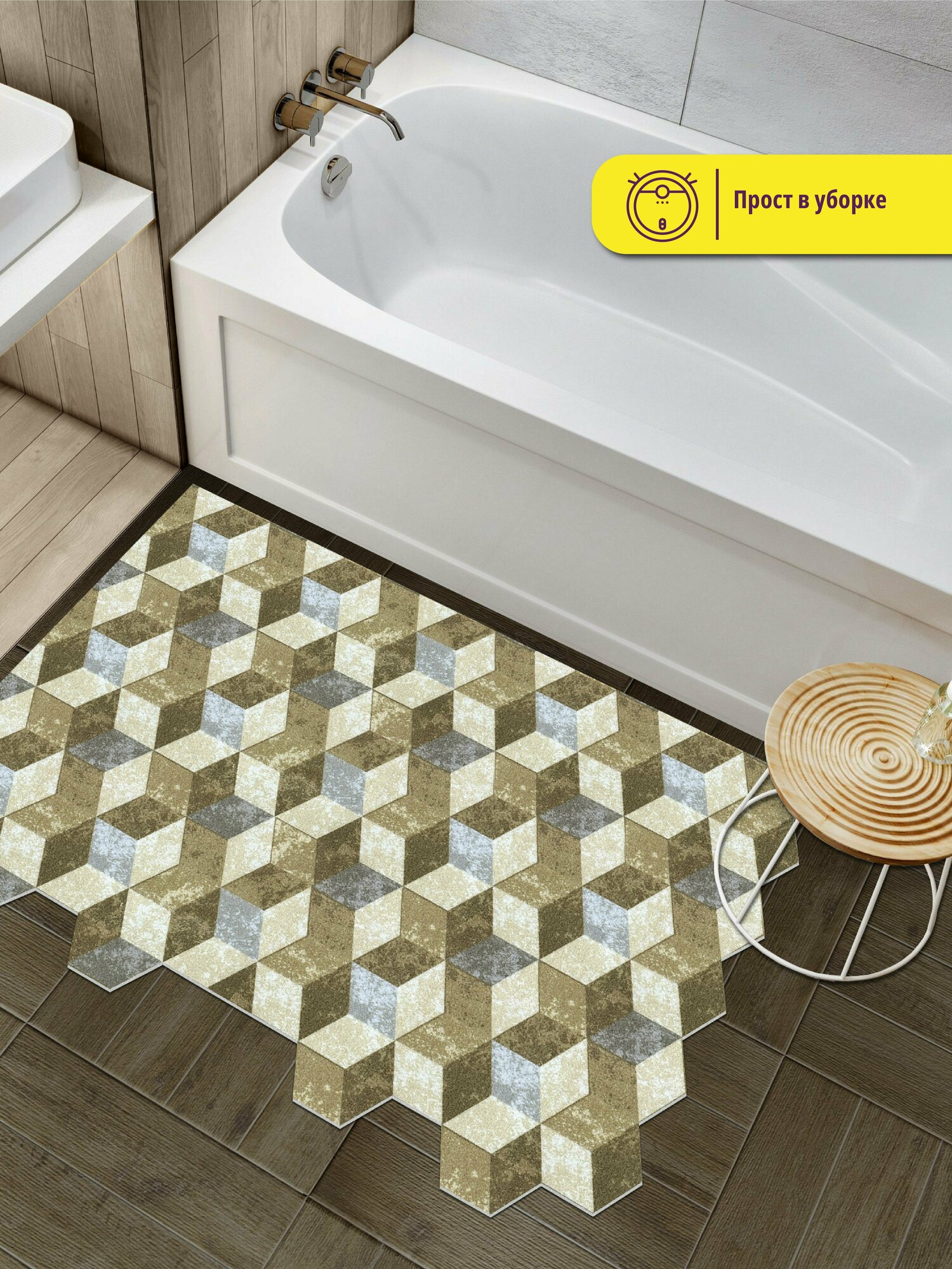 СохранитьКоврик вырезной, придверный Icarpet PRINT /Размер 80х120см/ 3D Куб серо-бежевый, коврик для ванной, для кухни, прикроватный коврик интересное: