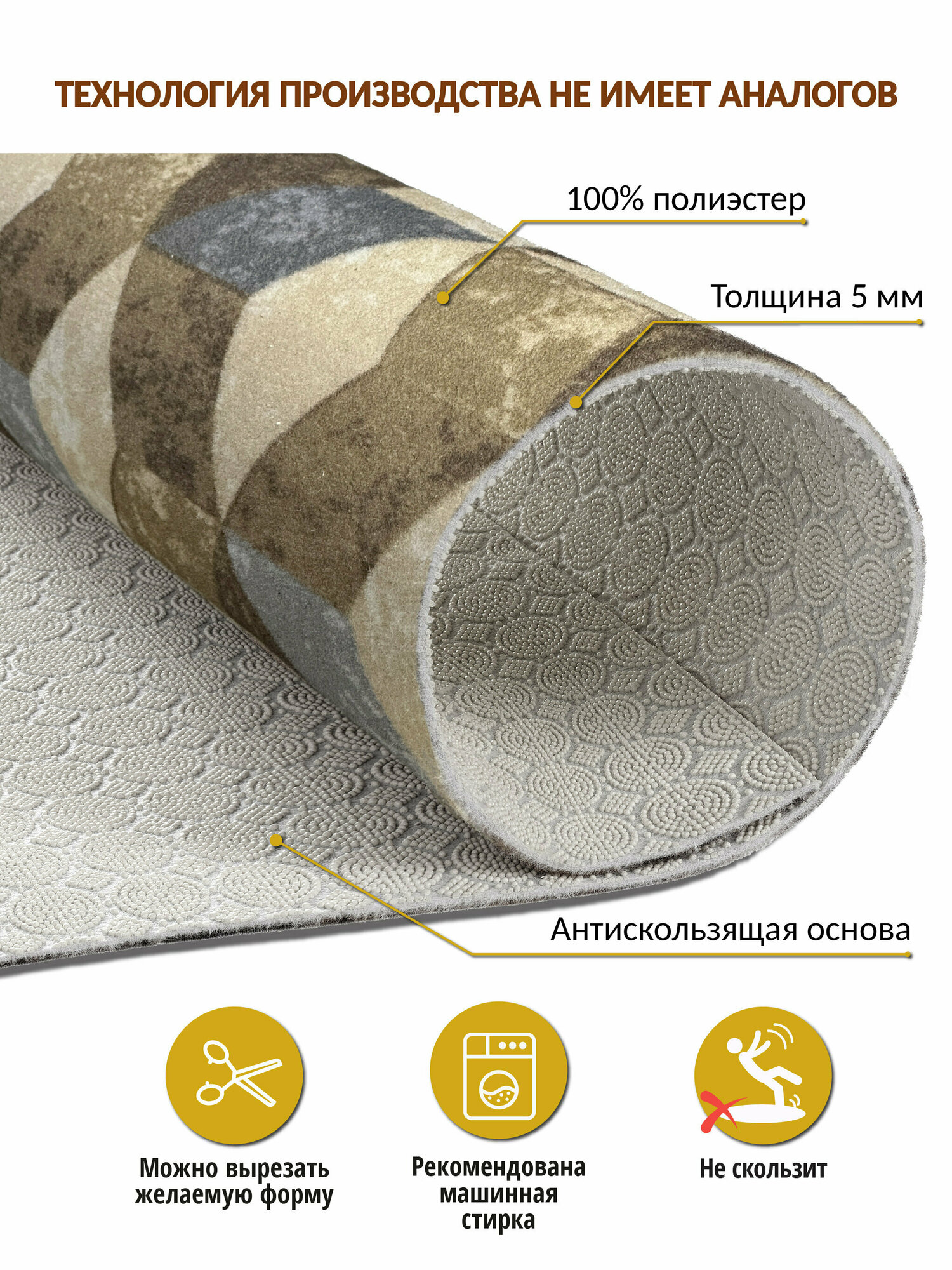 Коврик придверный, прикроватный, вырезной Icarpet PRINT /100х150 см/ Иллюжн бежево-коричневый, коврик прикроватный для кухни, для ванной