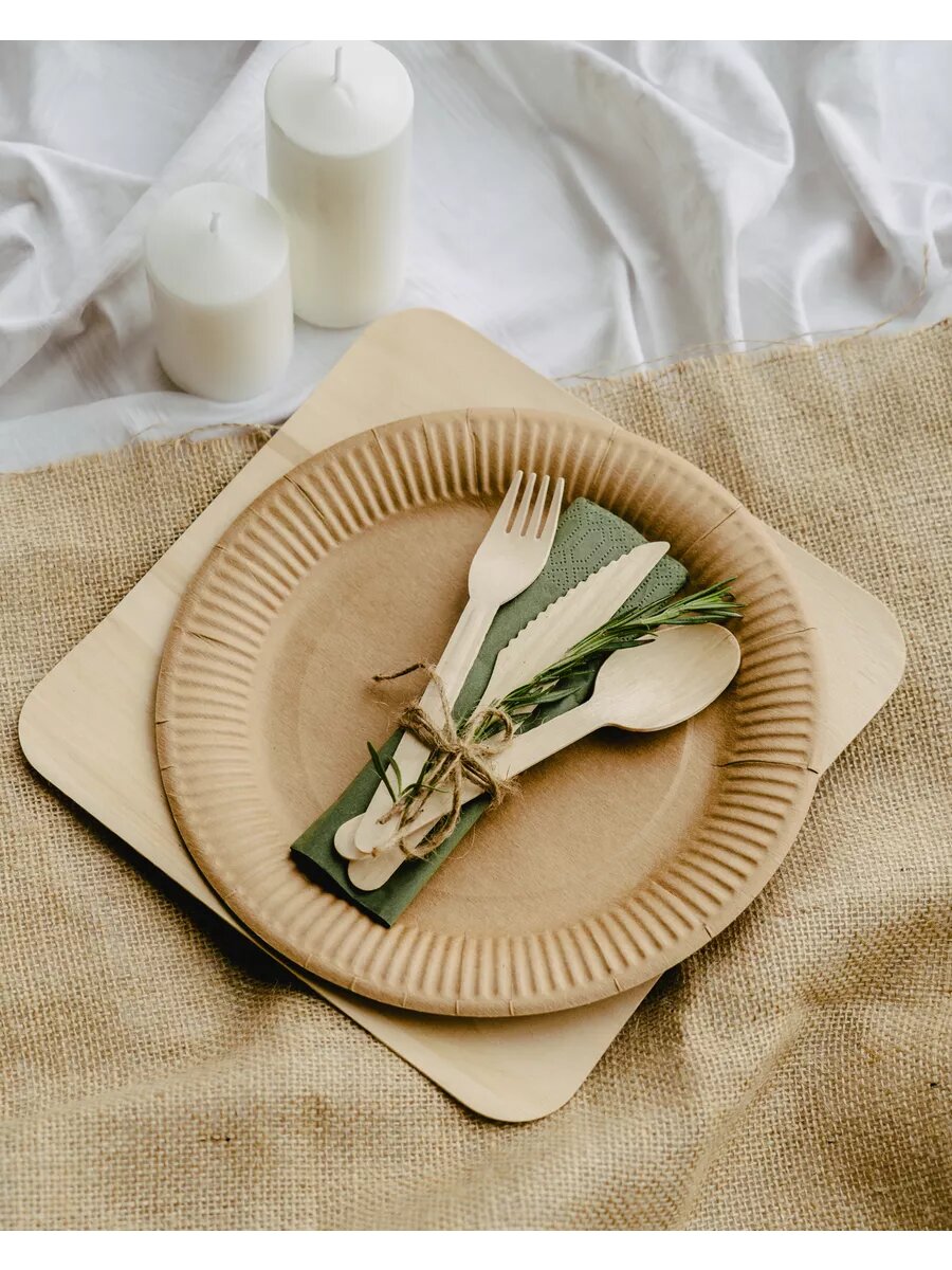 Одноразовая посуда, тарелки одноразовые бумажные крафт 23 см, набор 100 штук интересное: