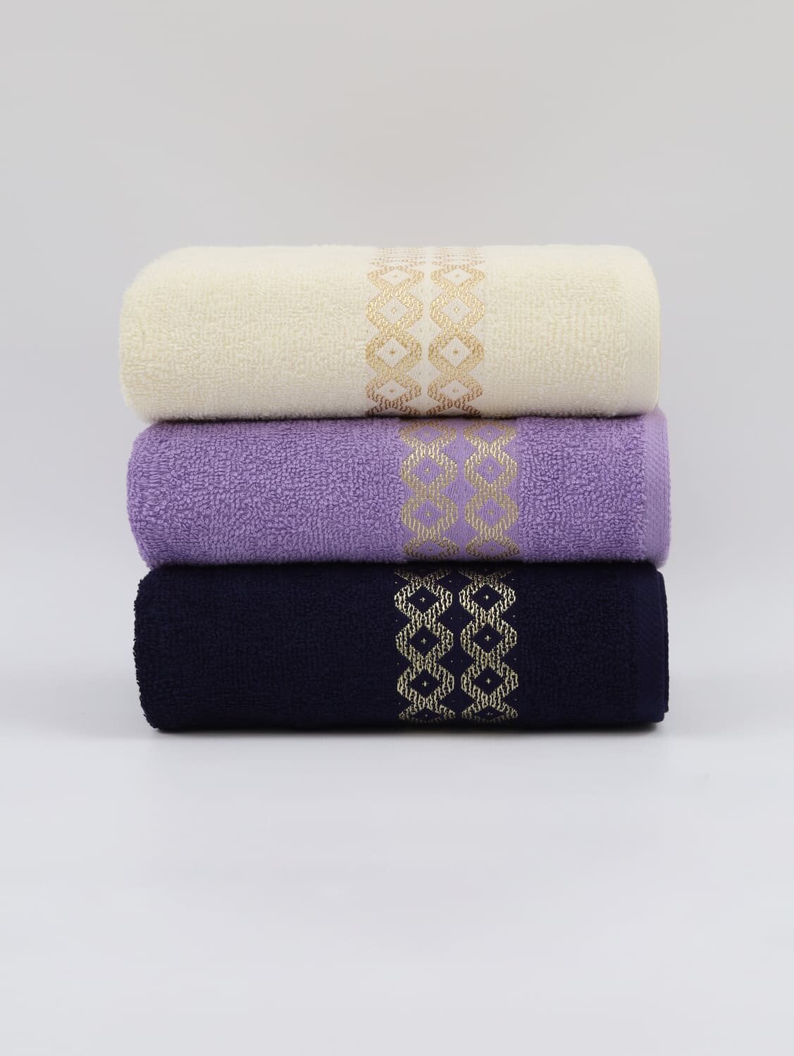 Набор № 2619 махровых полотенец Крем+темно-синий+сирень 3 шт (50x80 3 шт)