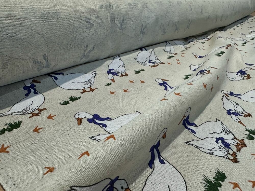 Купить 150см. Ткань лен хлопок с рисунком Гуси 150г/м от 1 метра