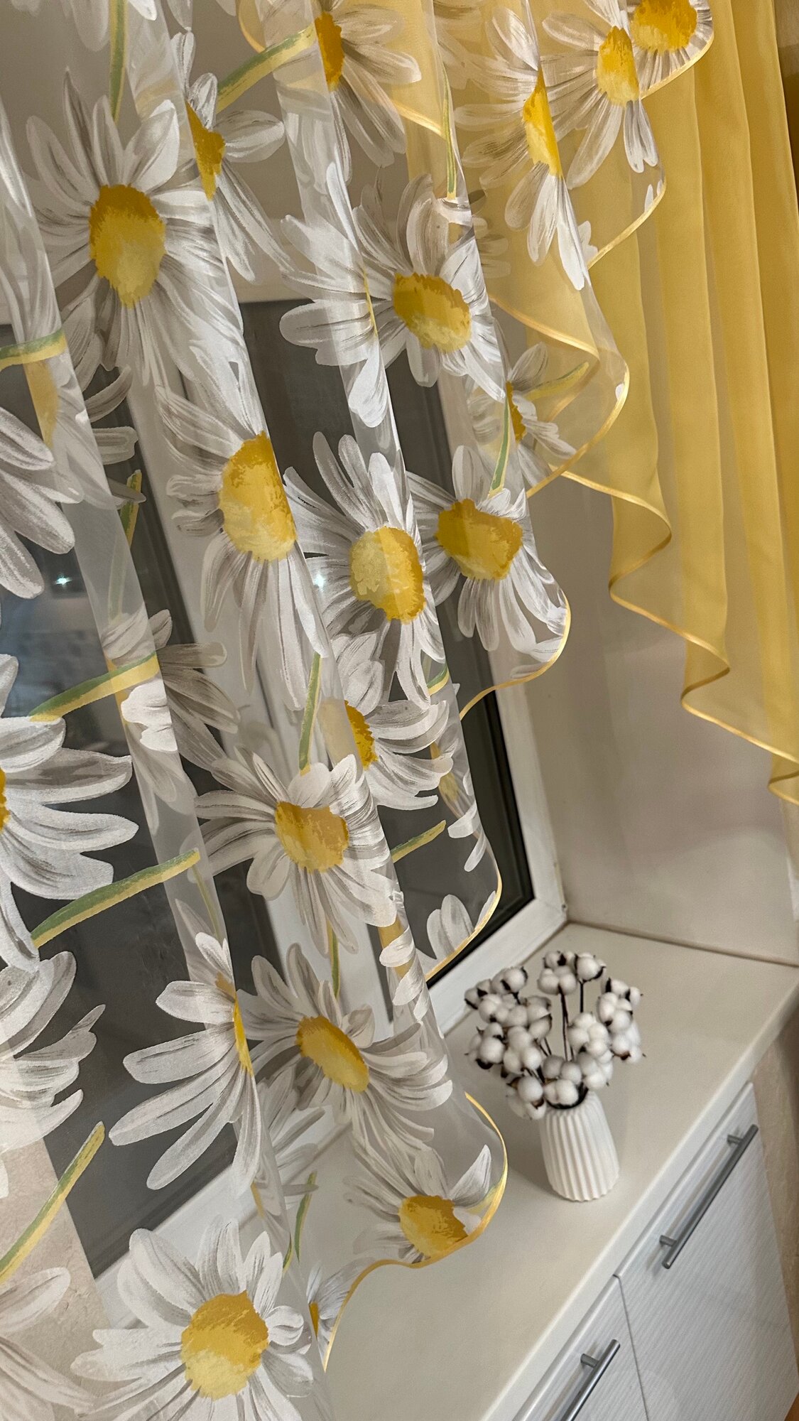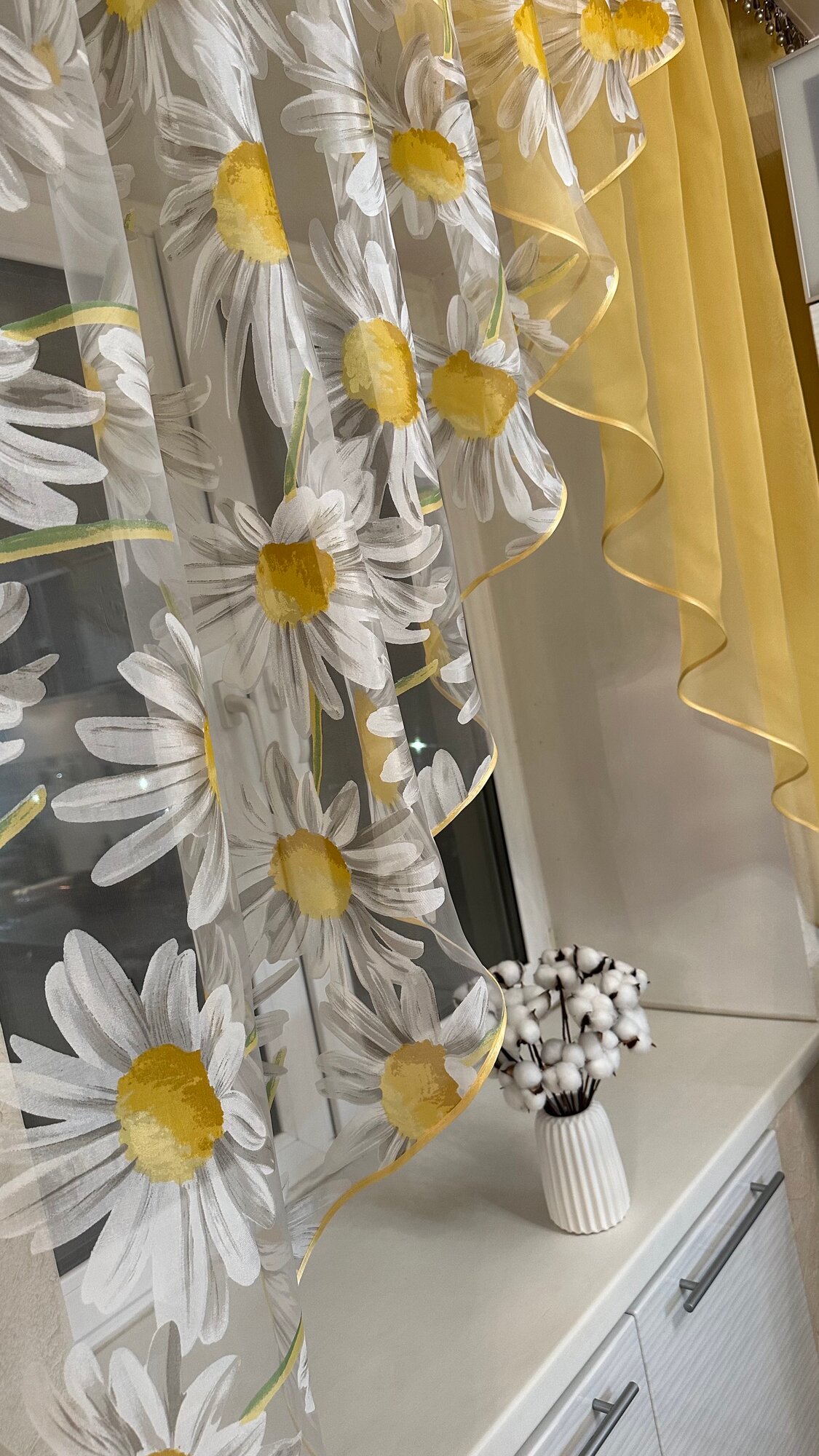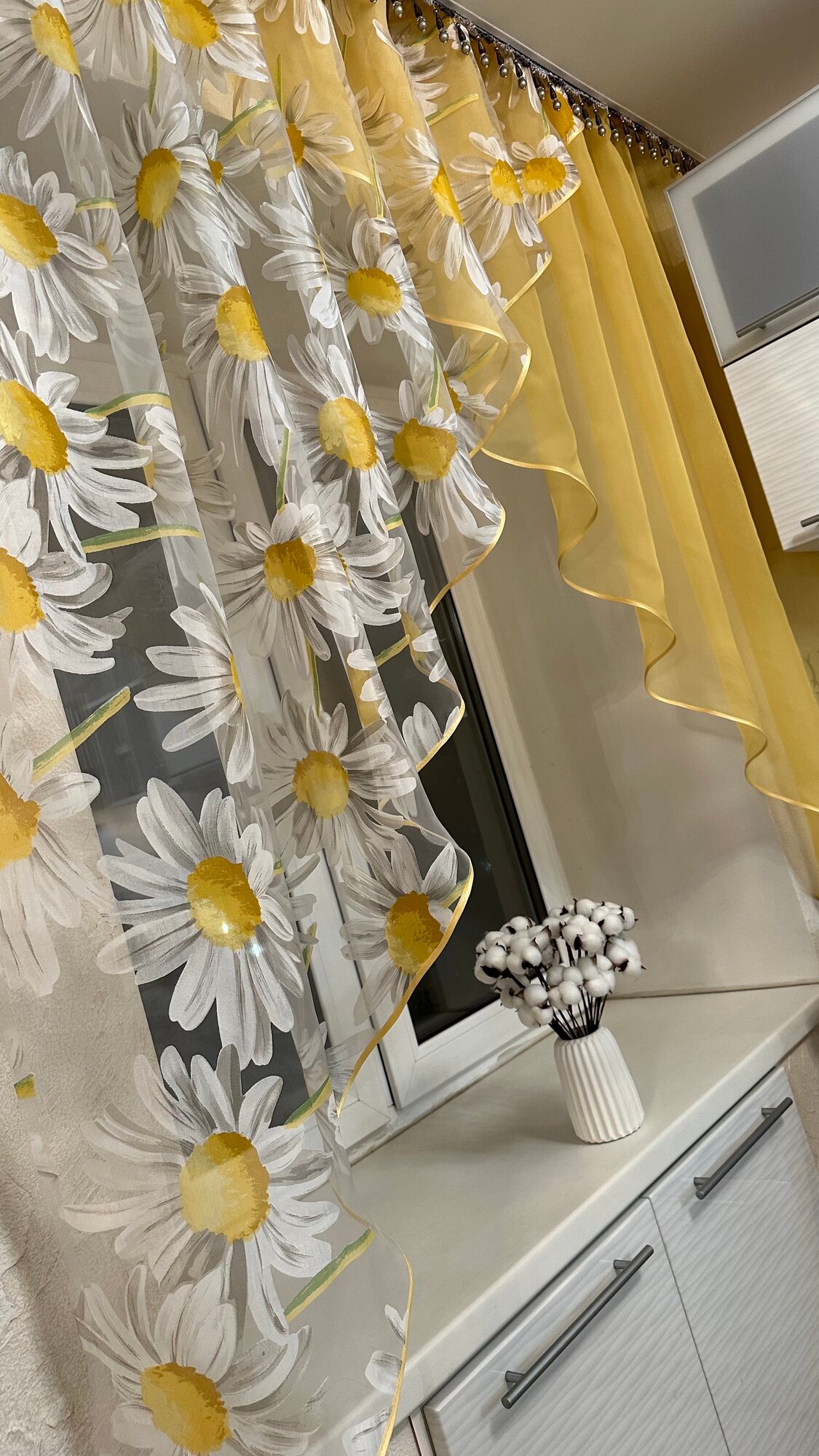 СохранитьКухонная шторка ромашка желтая, ширина 3м, высота 1,7м интересное: