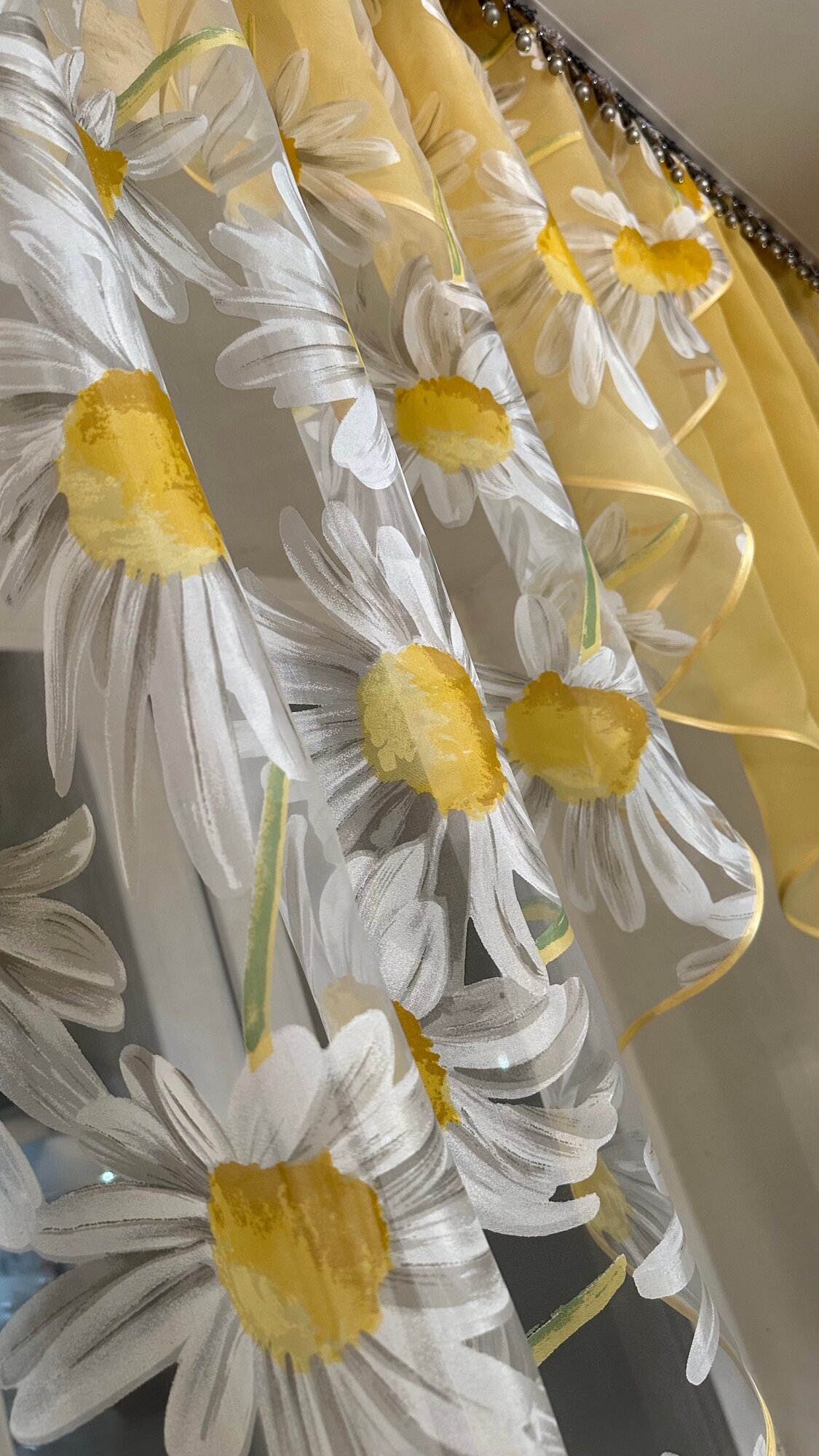 Купить Кухонная шторка ромашка желтая, ширина 3м, высота 1,7м