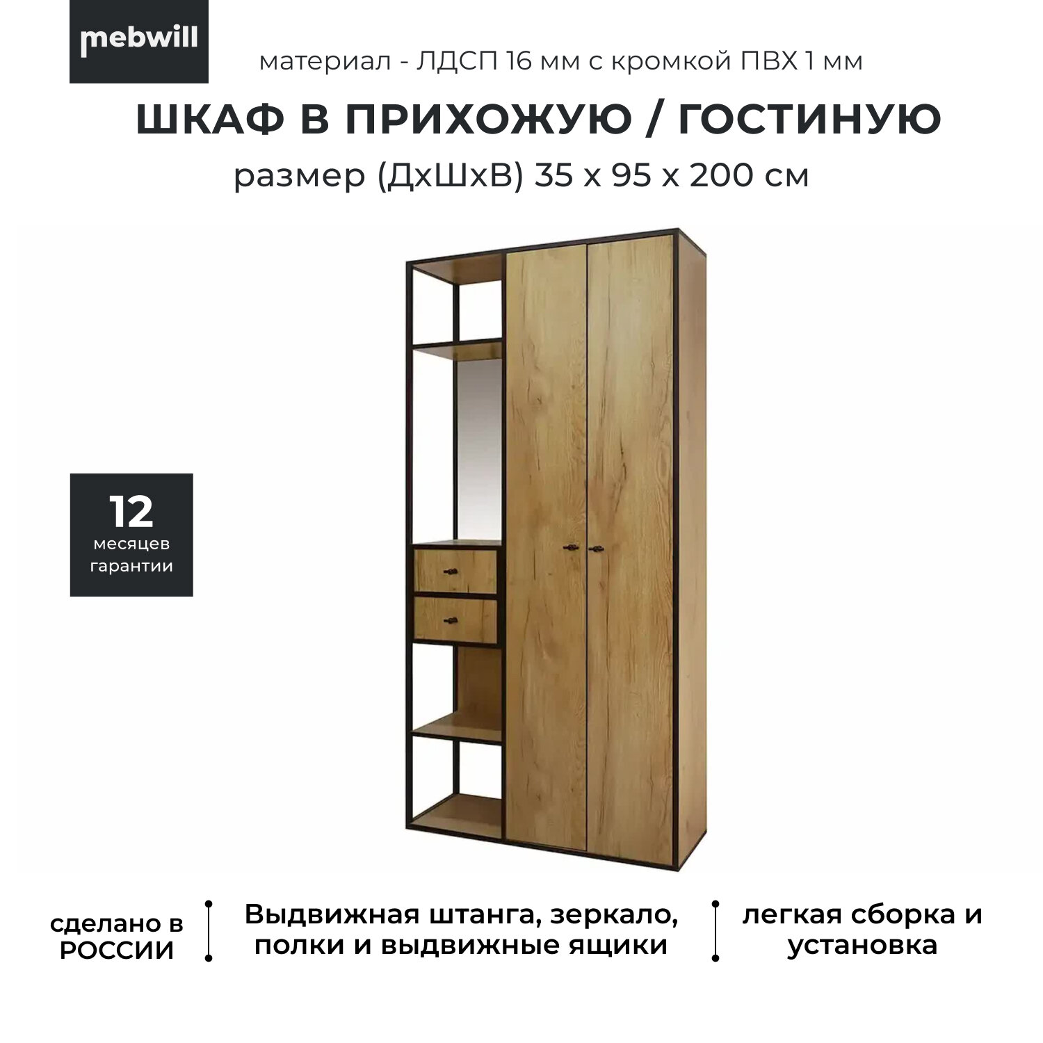 Прихожая мебель в коридор Ивару Берген-5, 95х35х200 см, цвет дуб крафт золотой