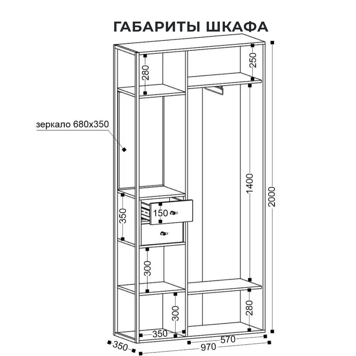 Прихожая Ивару Гретта Эльза 2 дуб эльза/темно-серый лофт 90x35x200 см