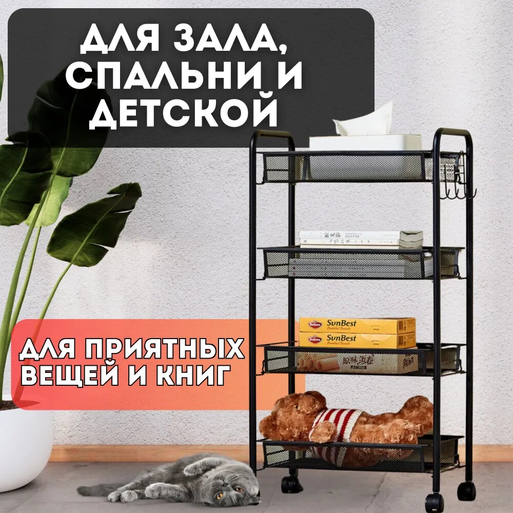 Этажерка Allinside на колесиках, металл, 4 уровня, чёрная интересное: