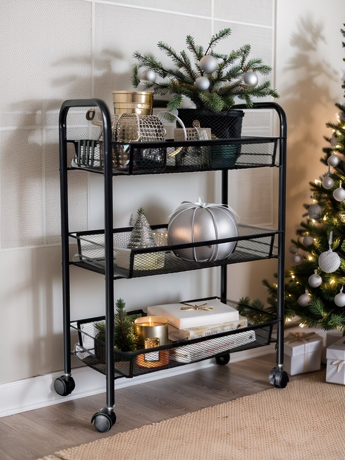 Купить Этажерка Allinside, на колесиках, металлическая, 3 яруса, чёрная