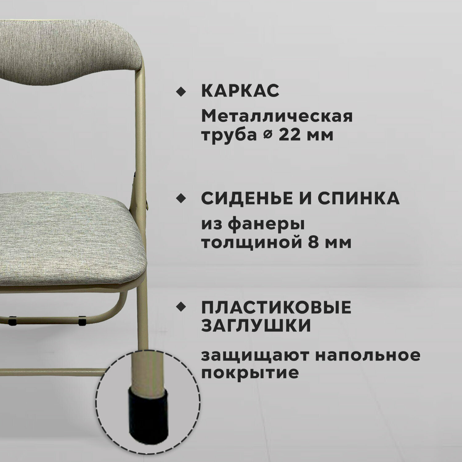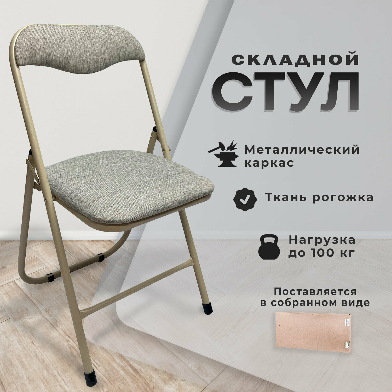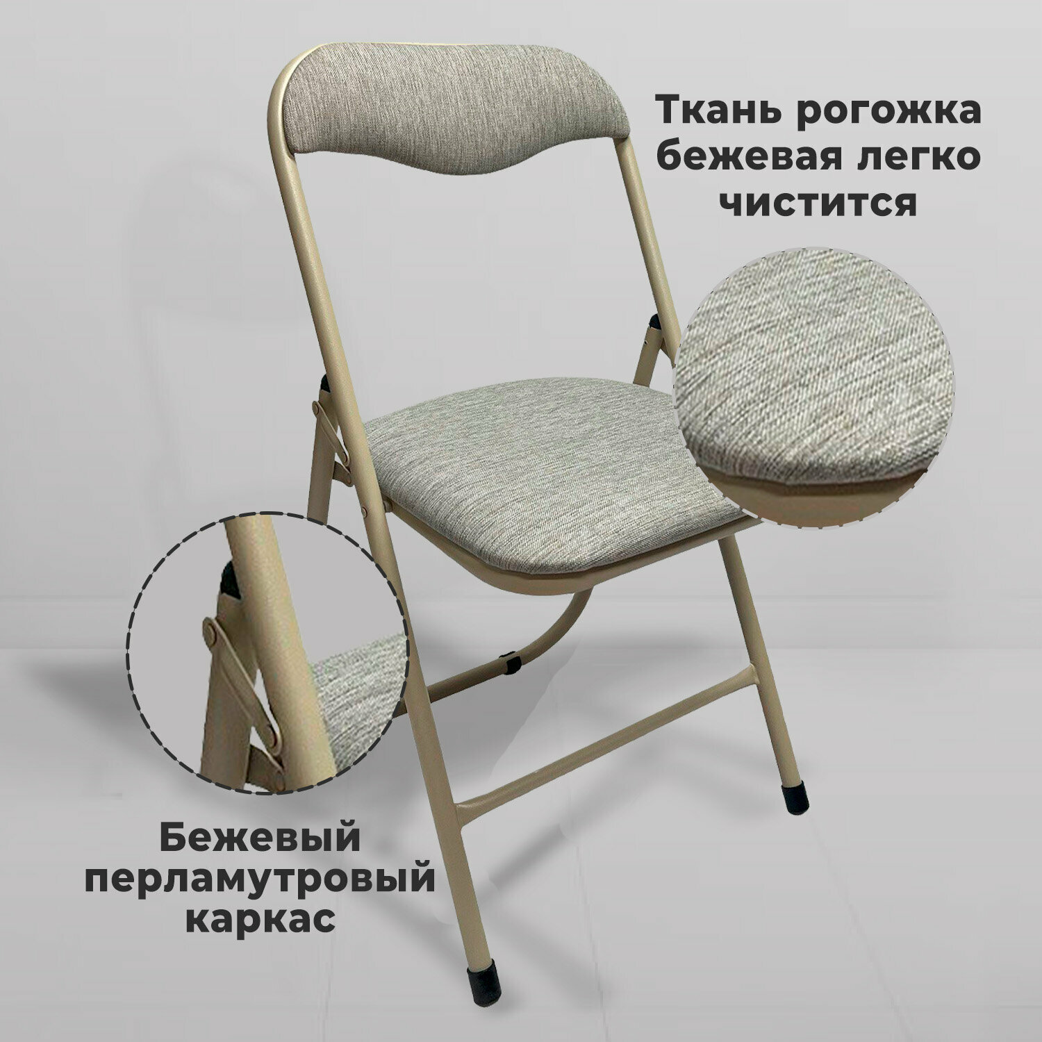 Стул складной кухонный, офисный, для гостиной со спинкой, бежевый перламутровый каркас, рогожка бежевая, PC04, 533057 интересное:
