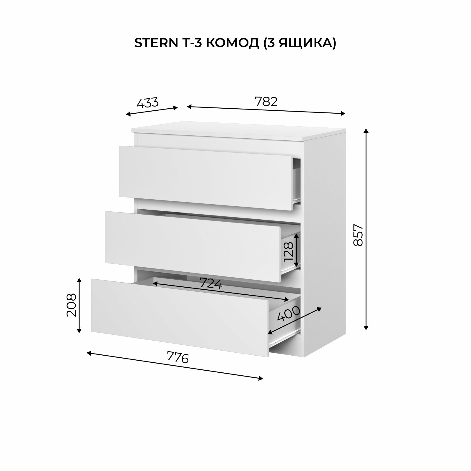Комод STERN Т-3 3 ящика белый