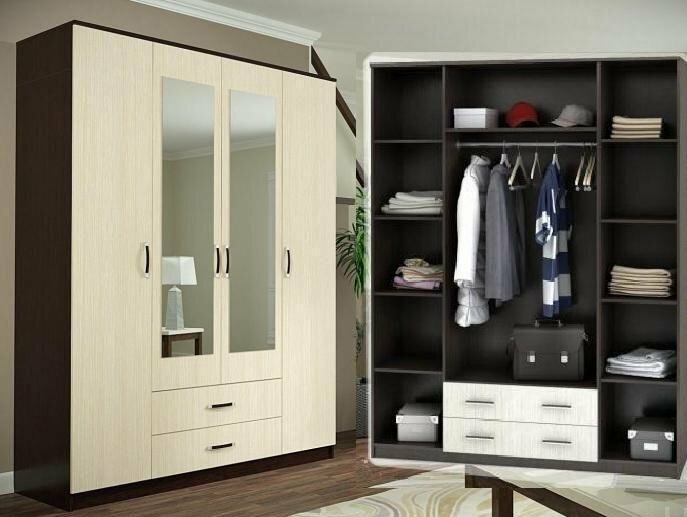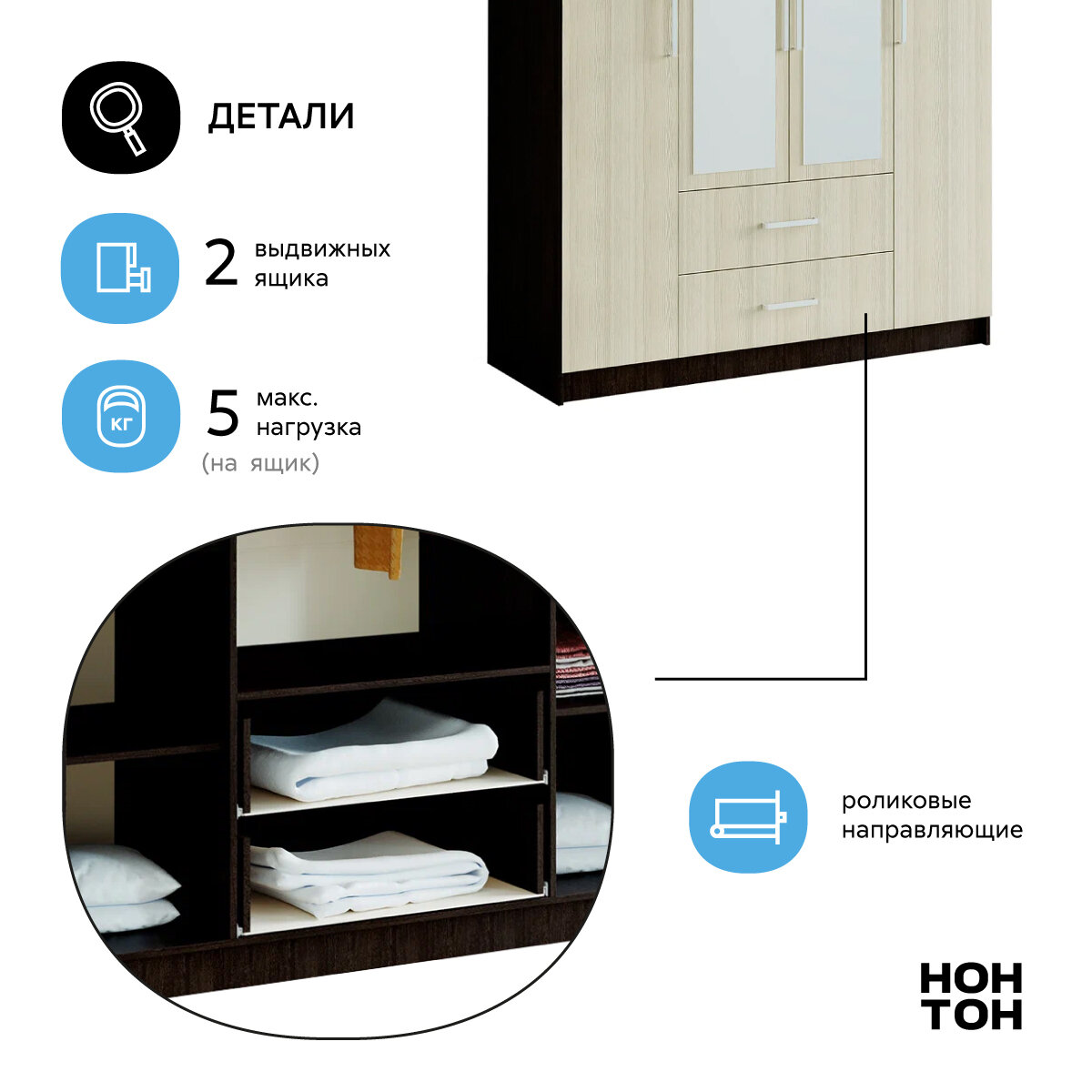 СохранитьПервый Мебельный Распашной шкаф для одежды Фиеста со штангой, с зеркалом, с ящиками, с полками, 160х61х222 см Венге / Лоредо интересное: