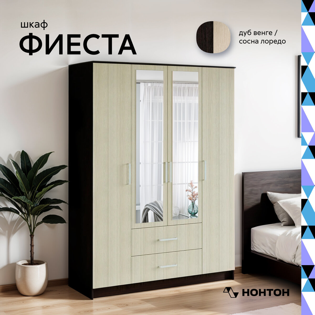 Шкаф для одежды с зеркалом Нонтон Фиеста, венге / лоредо 120 см