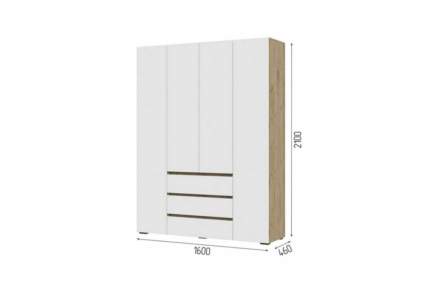 Шкаф для одежды четырех створчатый с ящиками и штангой Хелен ШК-05 белый дуб крафт золотой