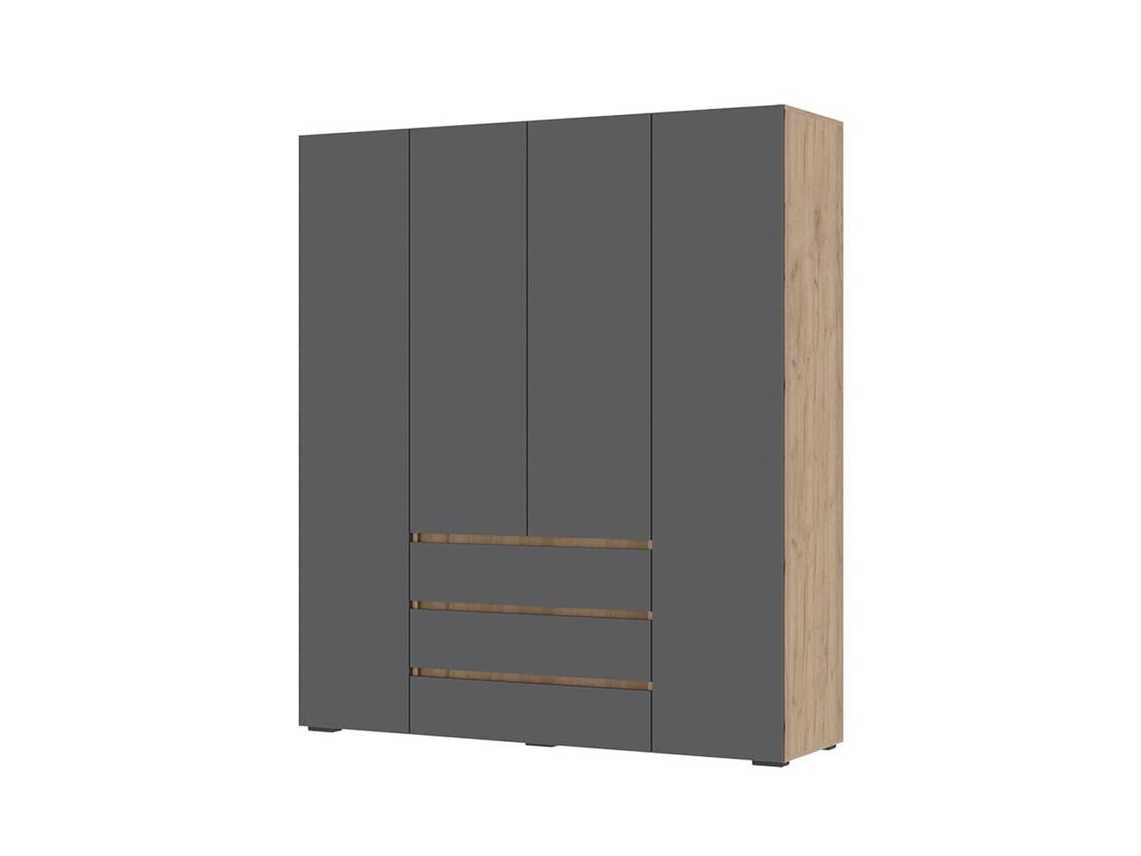 Хелен ШК 05 Шкаф 4х створчатый с ящиками (1600х2080х460) серый графит/дуб крафт золото