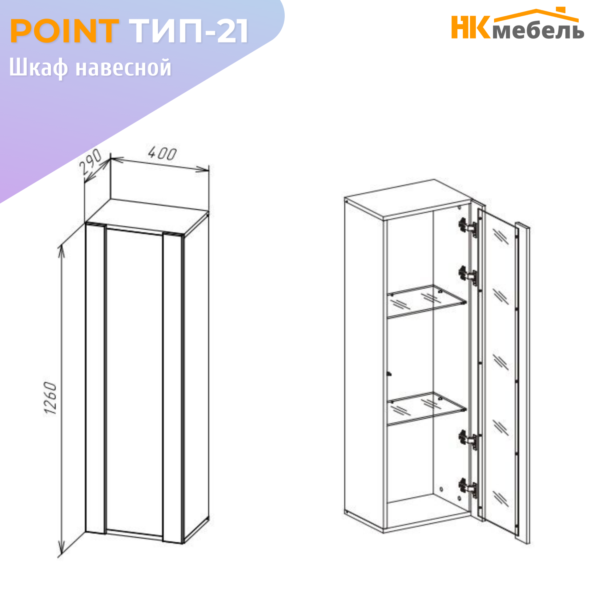 POINT ТИП-21 шкаф навесной, 40 х 126 х 29 см, МДФ/ЛДСП, Серый Графит