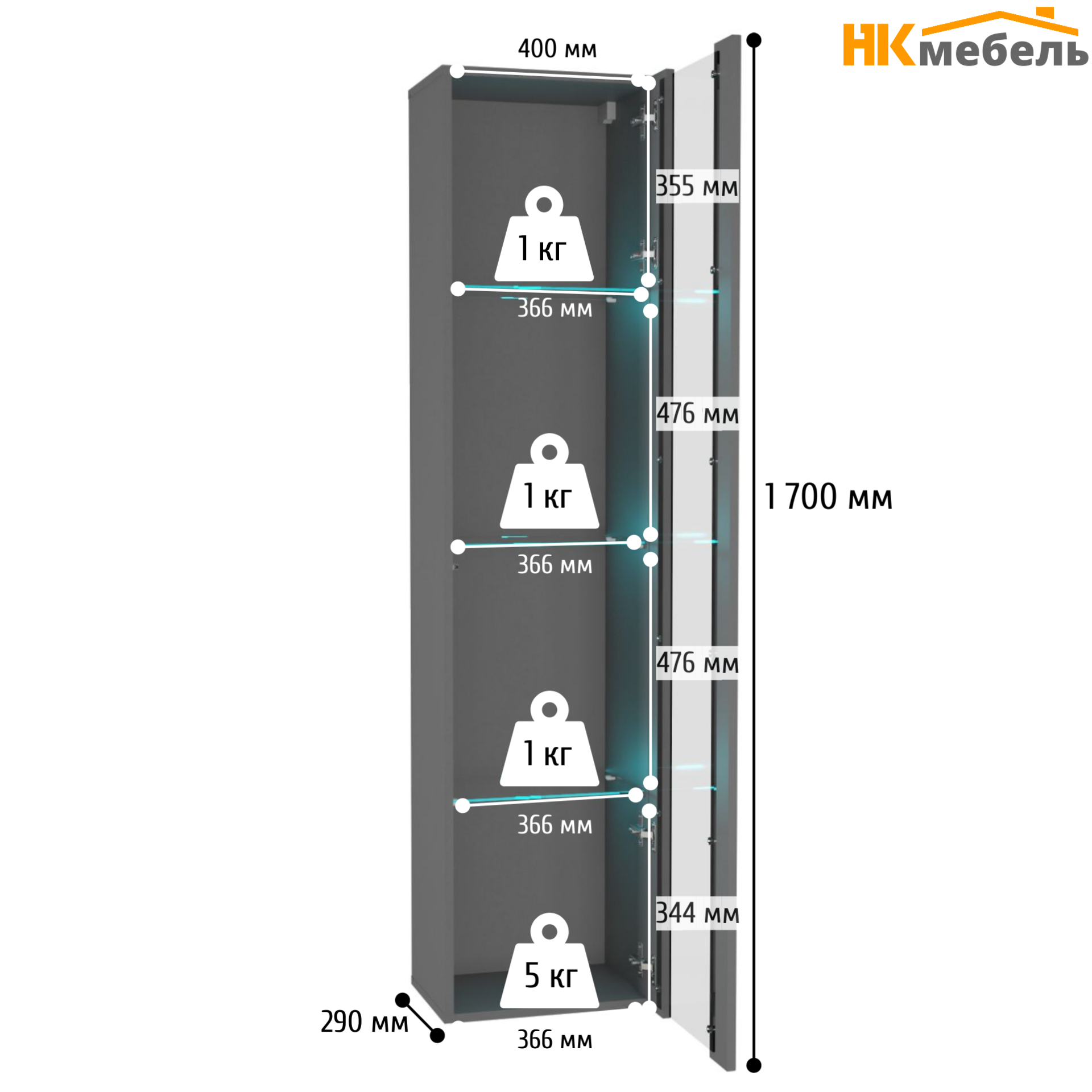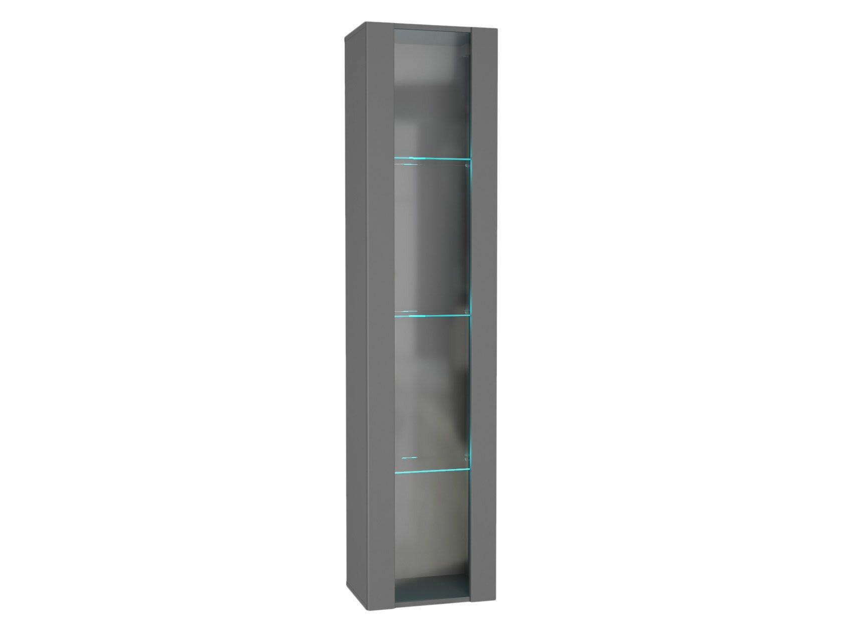 Шкаф витрина навесной с подсветкой POINT 41, Серый графит, 40х170х29 см (ШхВхГ)