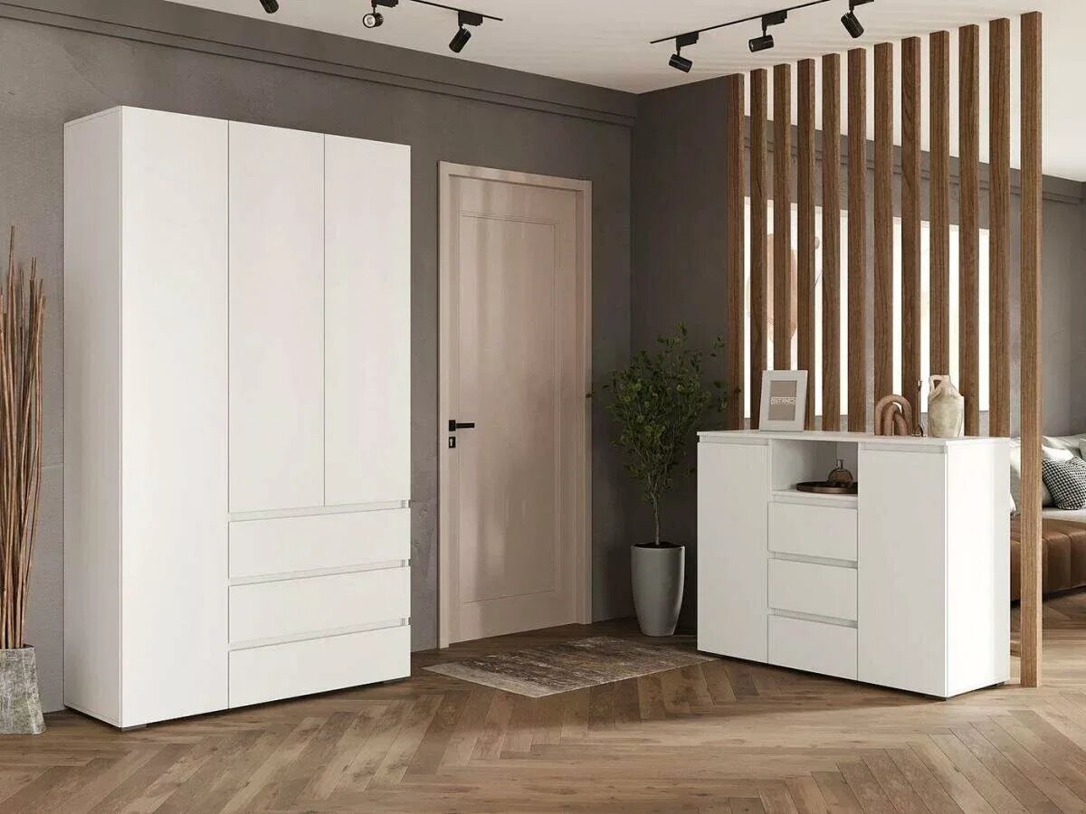 Шкаф для одежды распашной Нонтон Луас, 120 см, 7 полок и штанга, белый глянец