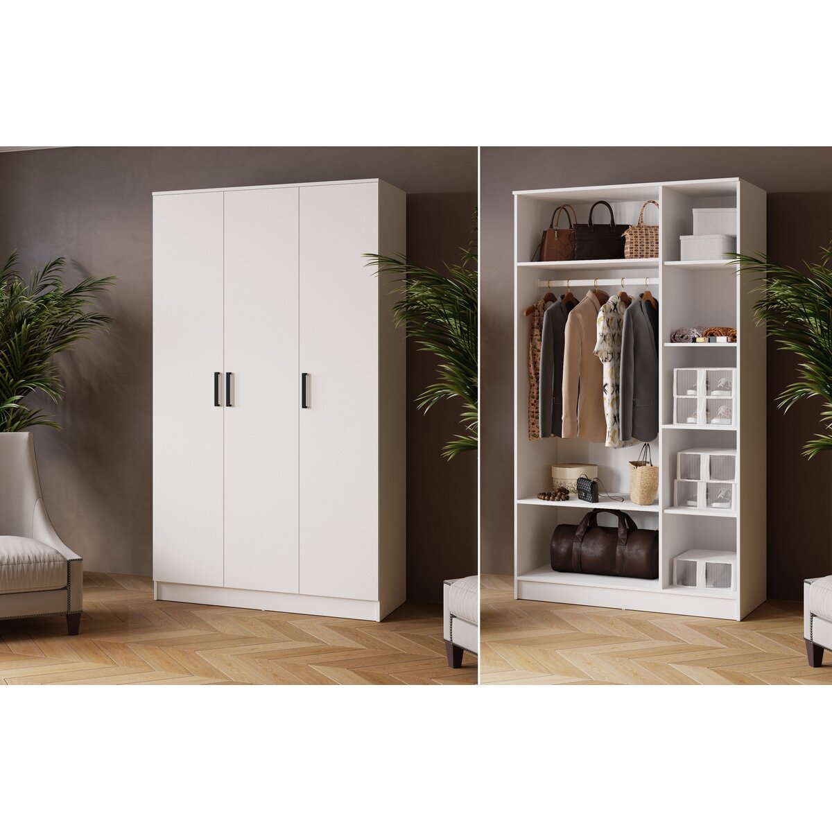 Шкаф для одежды распашной Нонтон Луас, 120 см, 7 полок и штанга, белый глянец