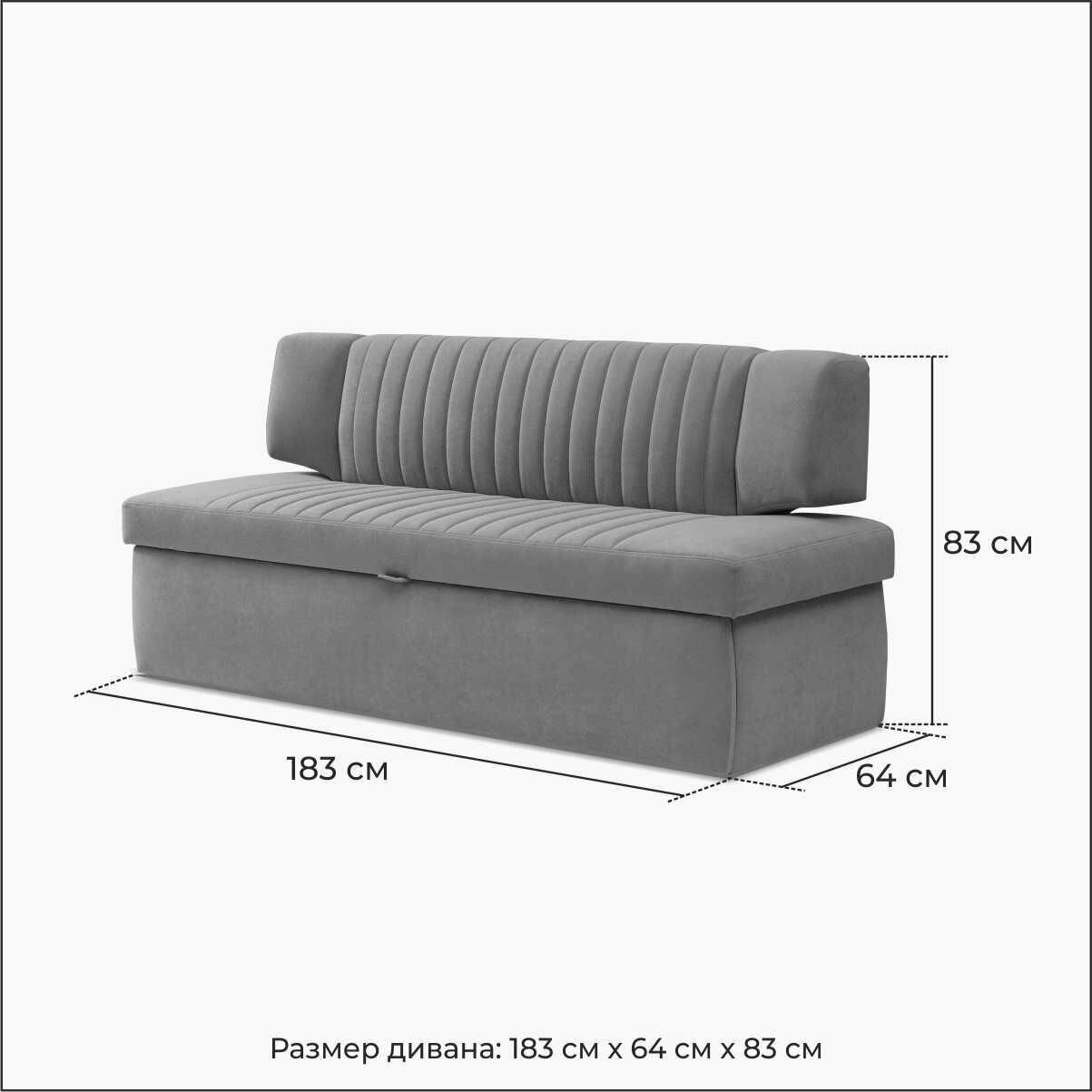Кухонный диван Страйп 183х64х83 см. Велюр - Мелисса 34, прямой раскладной диван со спальным местом