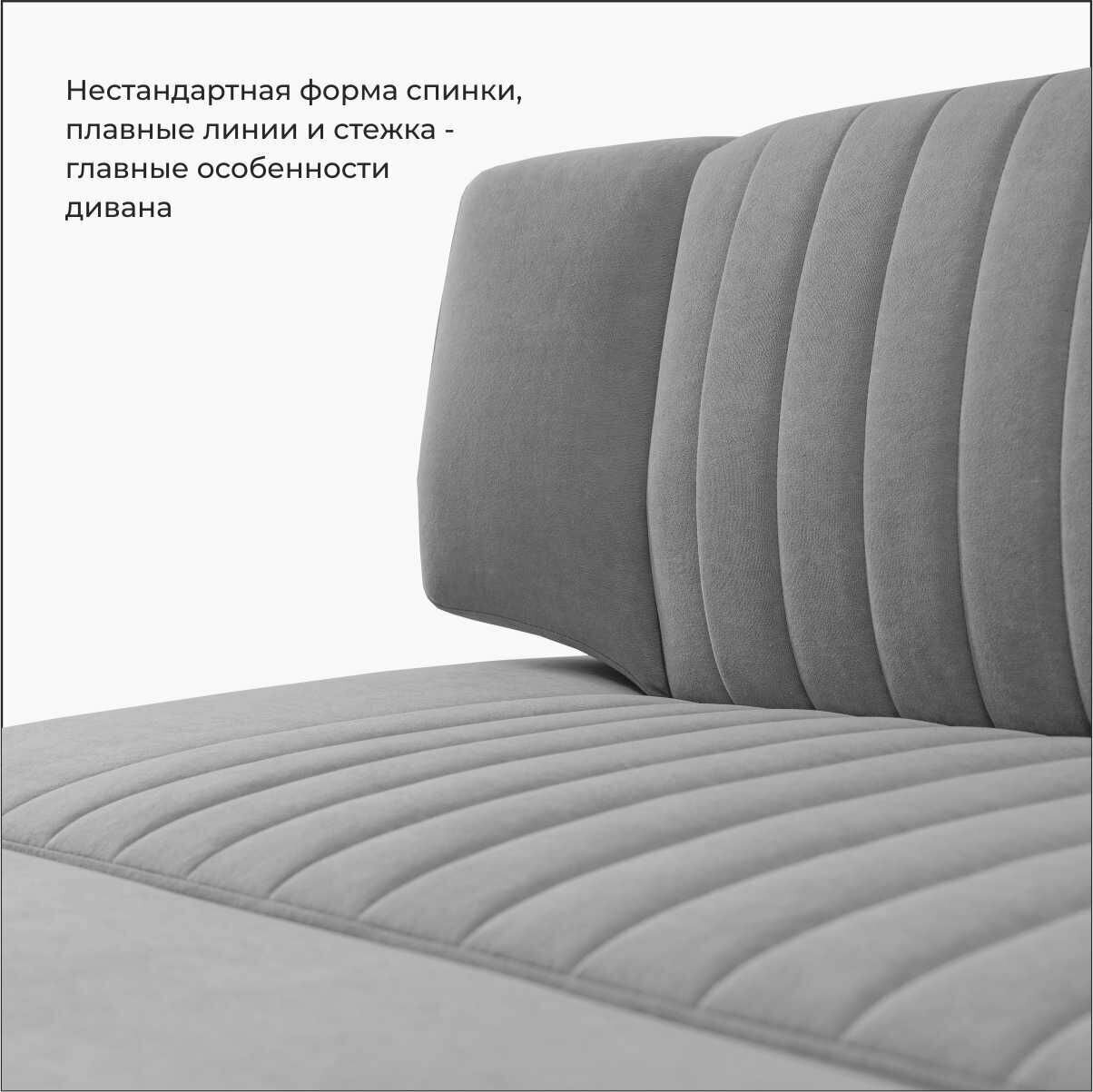 Страйп 198х64х83 см. Мелисса 34, прямой раскладной диван со спальным местом, Серый, Велюр, для дома и офиса