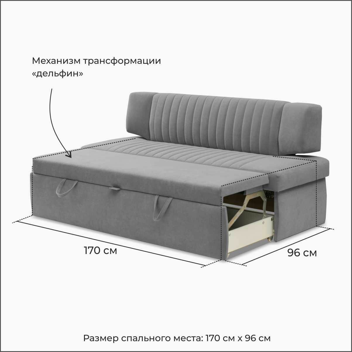 Кухонный раскладной диван Страйп 168х64х83 см. Мелисса 34, Серый, прямой диван со спальным местом, Велюр