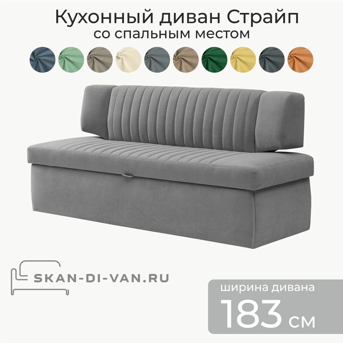 Кухонный диван Страйп 183х64х83 см. Мелисса 34, прямой раскладной диван со спальным местом, материал обивки Велюр
