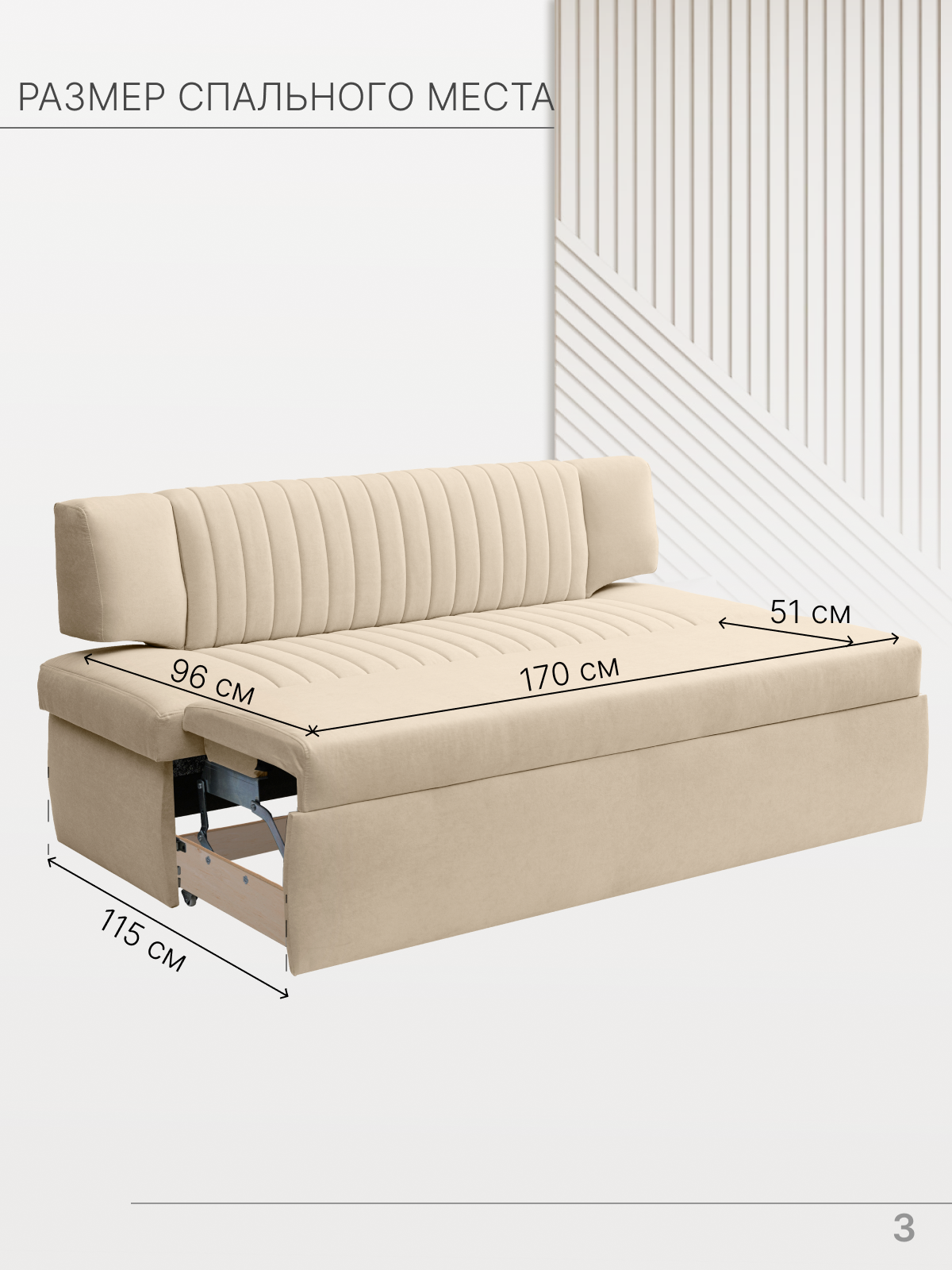 СохранитьКухонный раскладной диван Страйп 183х64х83 см. Мелисса 02, прямой диван со спальным местом, Бежевый, Велюр интересное:
