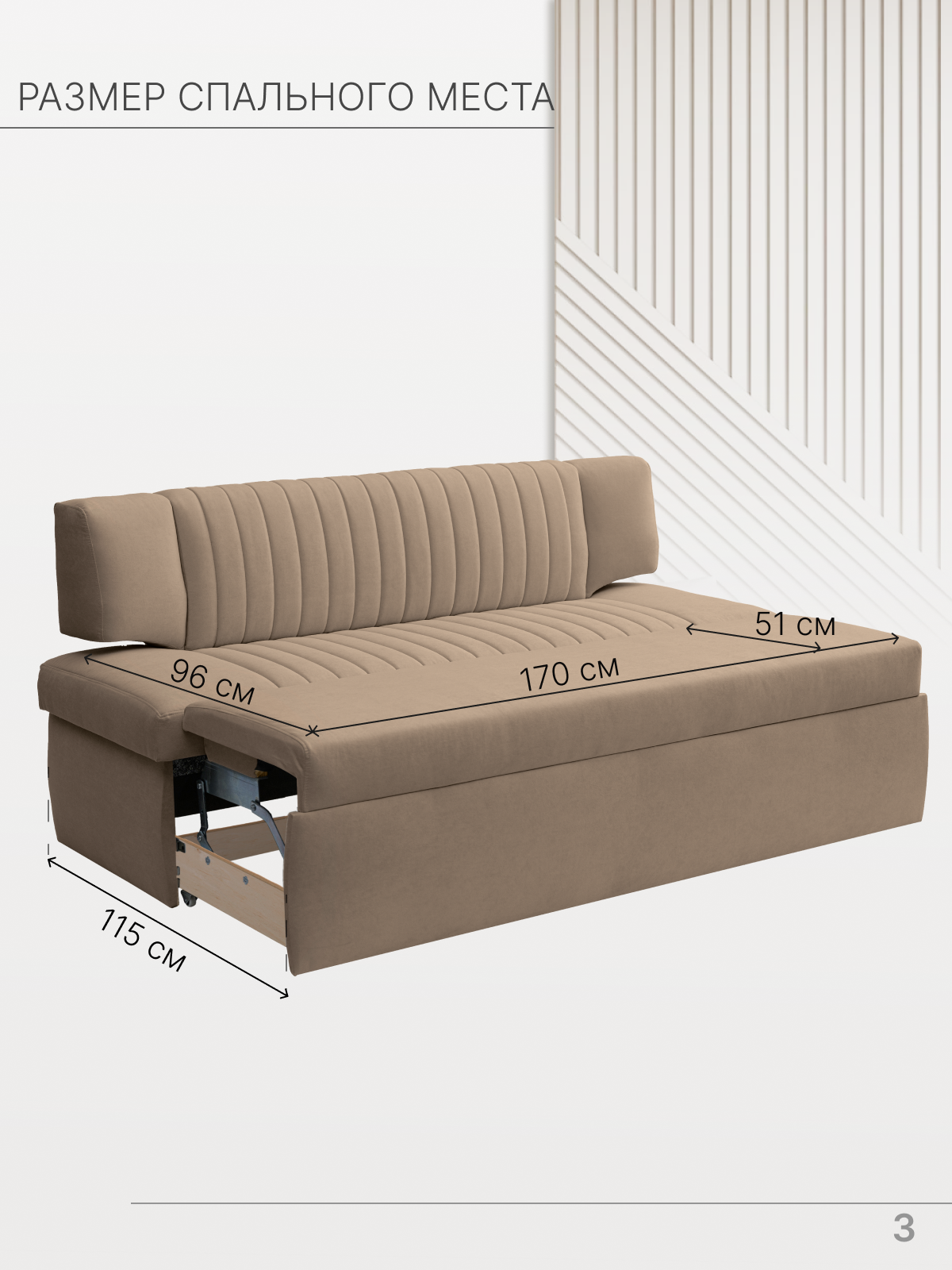 Кухонный раскладной диван Страйп 183х64х83 см. Мелисса 34, прямой раскладной диван со спальным местом, материал обивки Велюр