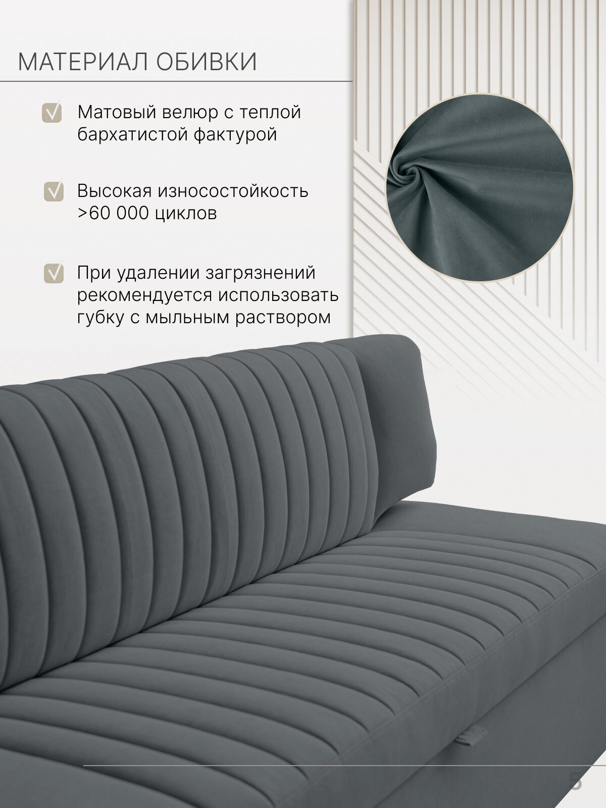 Страйп 183х64х83 см. Мелисса 35, прямой раскладной диван со спальным местом. Темно-графитовый, Велюр, для дома и офиса