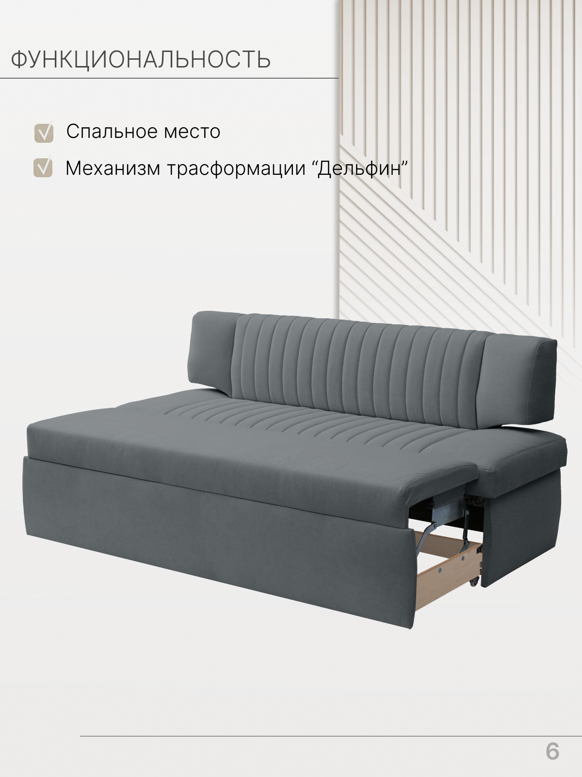 Кухонный раскладной диван Страйп 198х64х83 см. Мелисса 34, Серый, прямой диван со спальным местом, Велюр