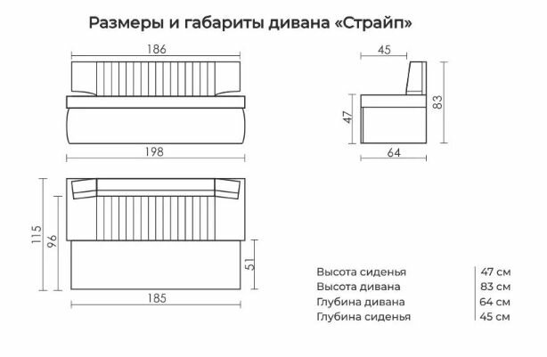 Кухонный диван Страйп 183х64х83 см. Мелисса 34, прямой раскладной диван со спальным местом, материал обивки Велюр