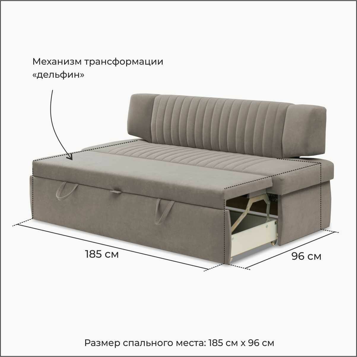 Кухонный раскладной диван Страйп 183х64х83 см. Мелисса 34, прямой раскладной диван со спальным местом, материал обивки Велюр