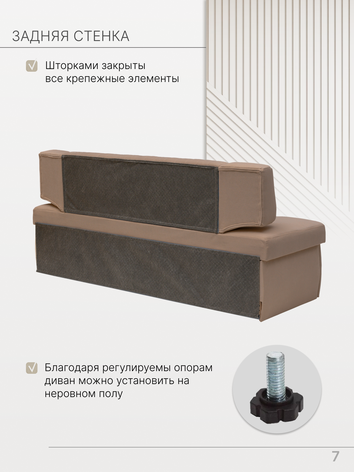 Кухонный раскладной диван Страйп 168х64х83 см. Мелисса 7, прямой диван со спальным местом, Темно Бежевый, Велюр