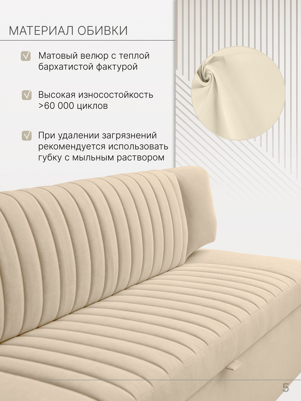 Страйп 183х64х83 см. Мелисса 02, прямой раскладной диван со спальным местом. Бежевый, Велюр, для дома и офиса
