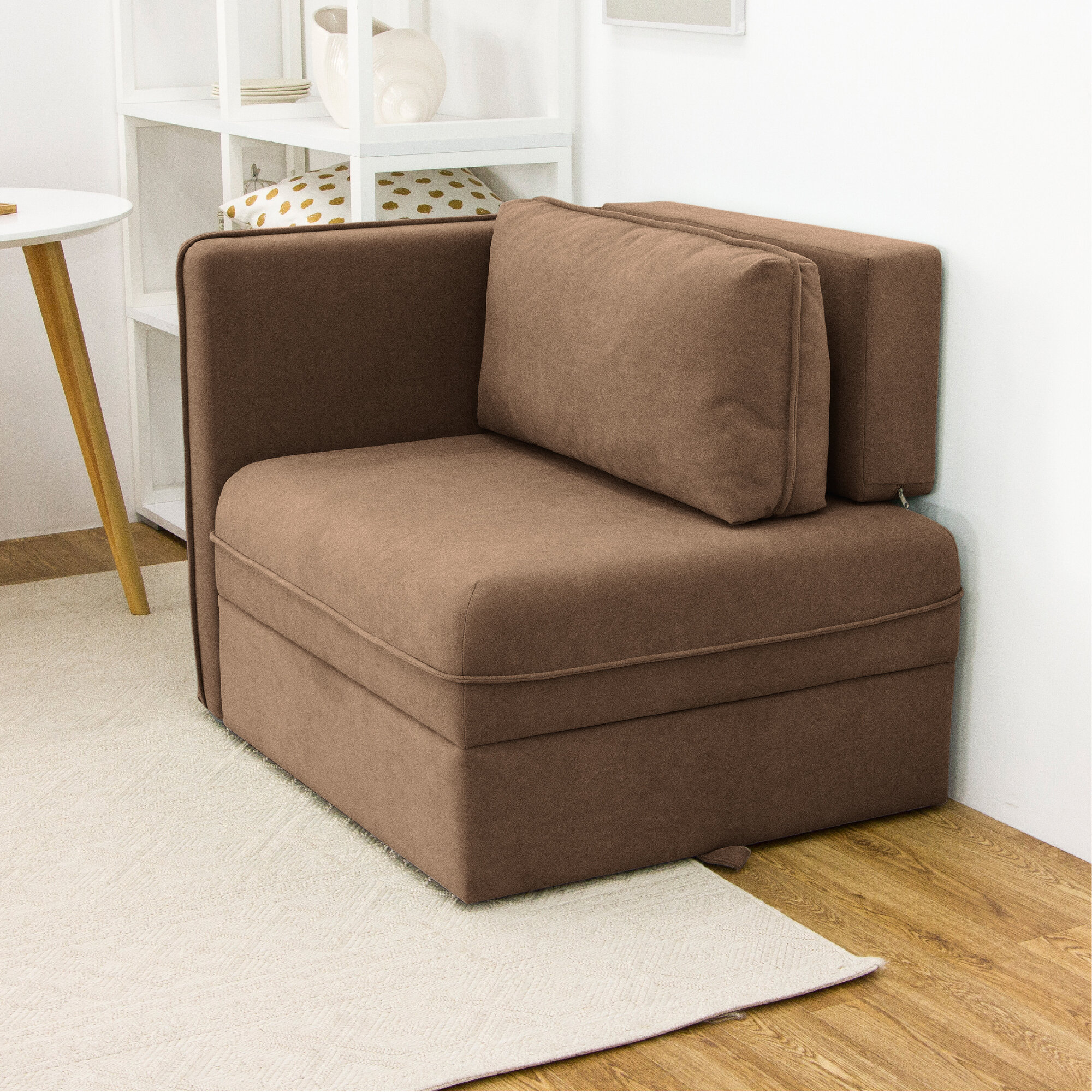 Купить Диван-кровать KRASDIVAN Олаф 80х100 см, с ящиком для белья, велюр Бахрия 6 коричневый