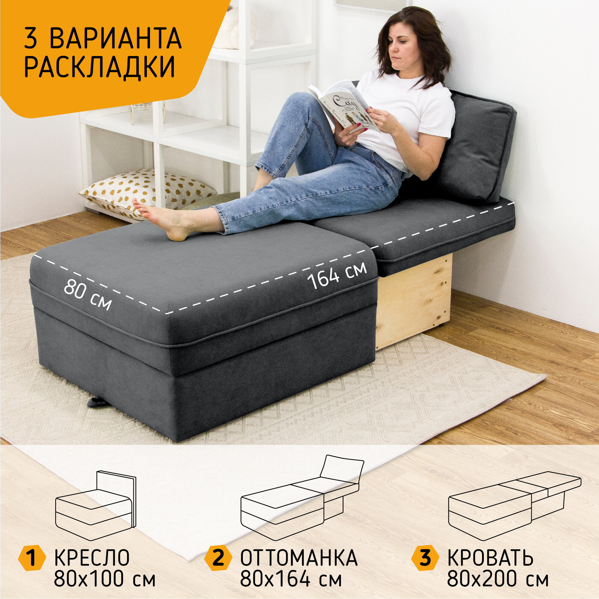 Диван-кровать KRASDIVAN Олаф 80х100 см, с ящиком для белья, велюр Domino 9 темно-серый