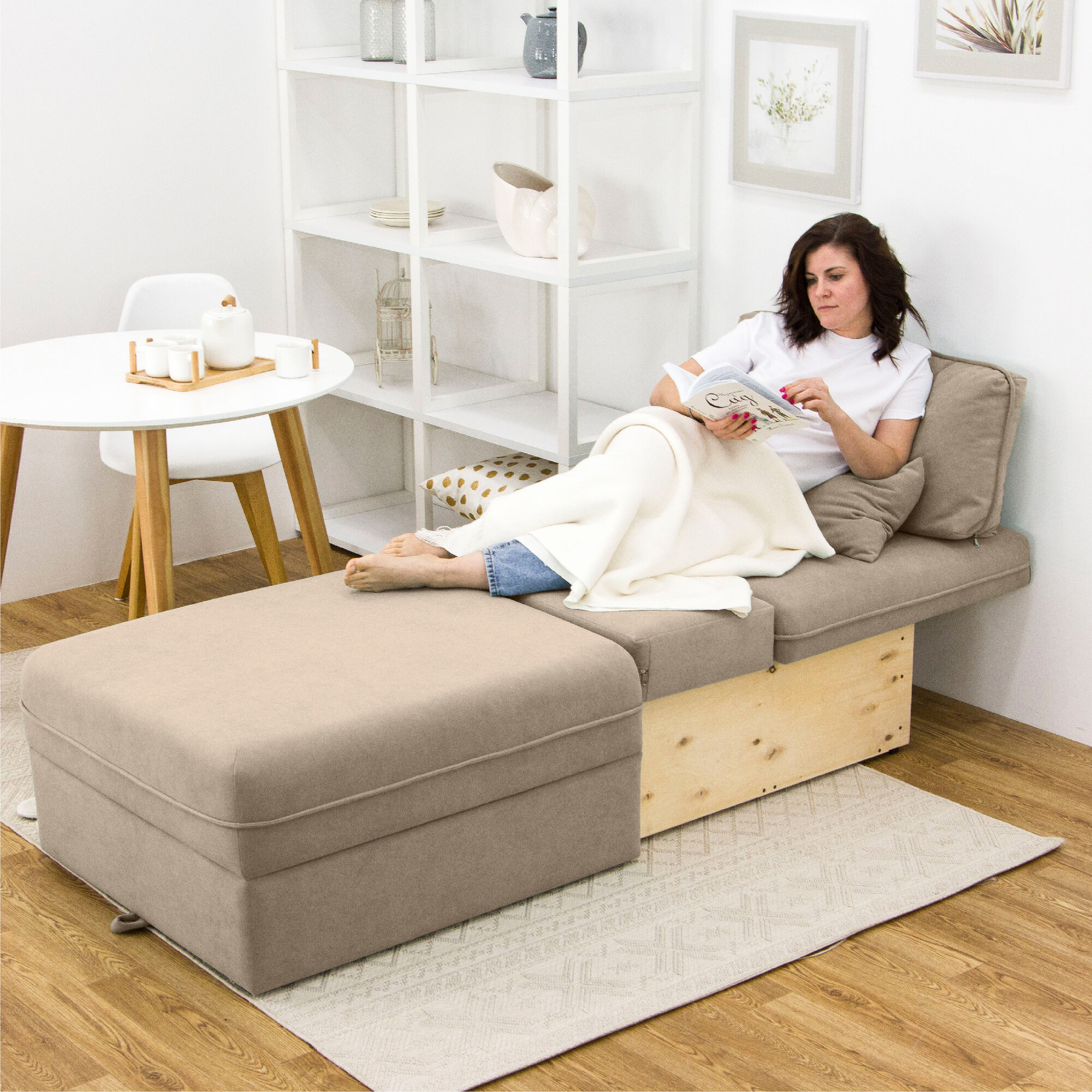 Диван-кровать KRASDIVAN Олаф 80х100 см, с ящиком для белья, велюр Domino 2 бежевый