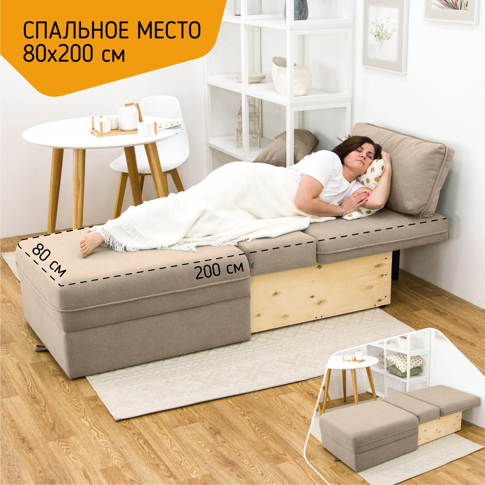 Купить Диван-кровать KRASDIVAN Олаф 80х100 см, с ящиком для белья, велюр Бахрия 3 бежевый