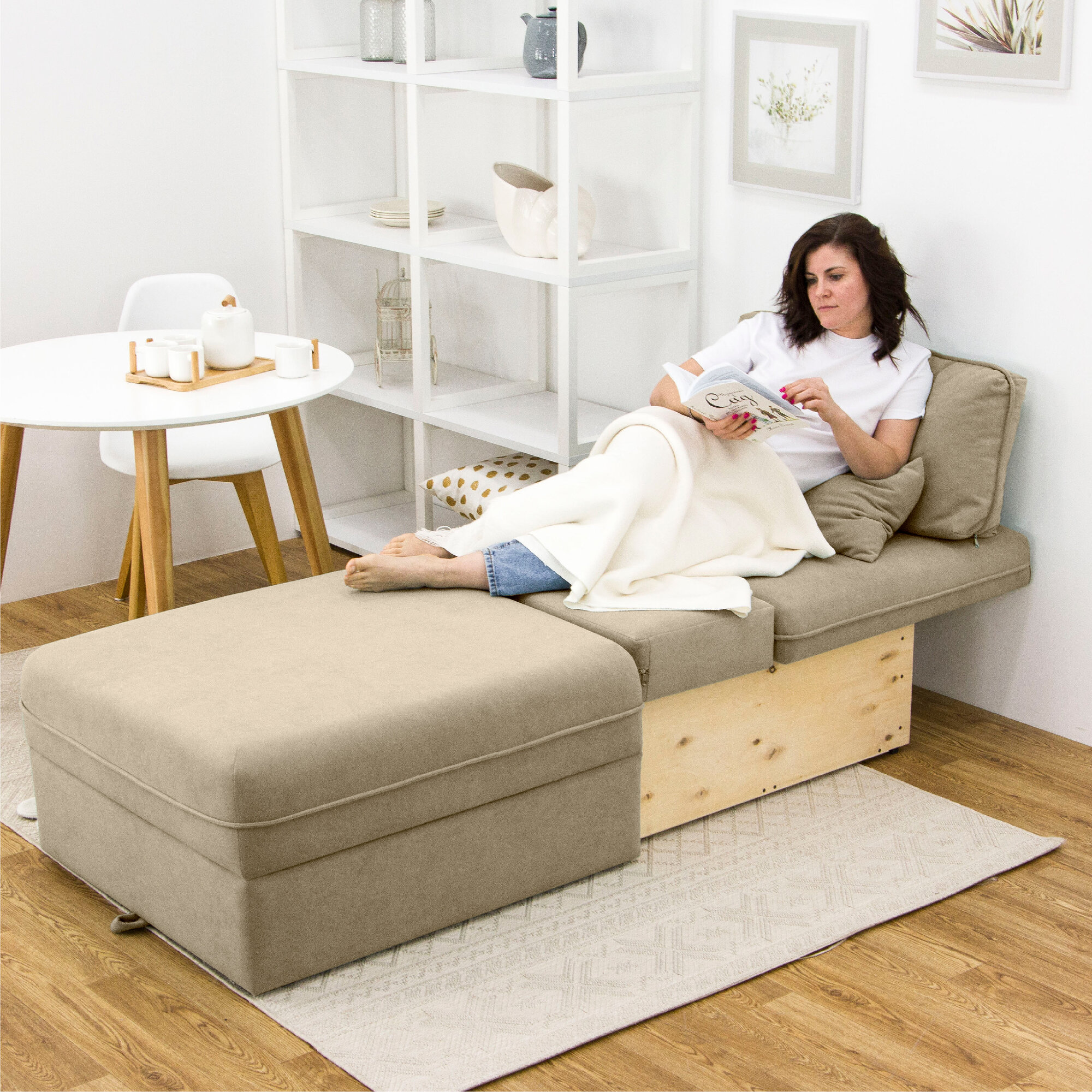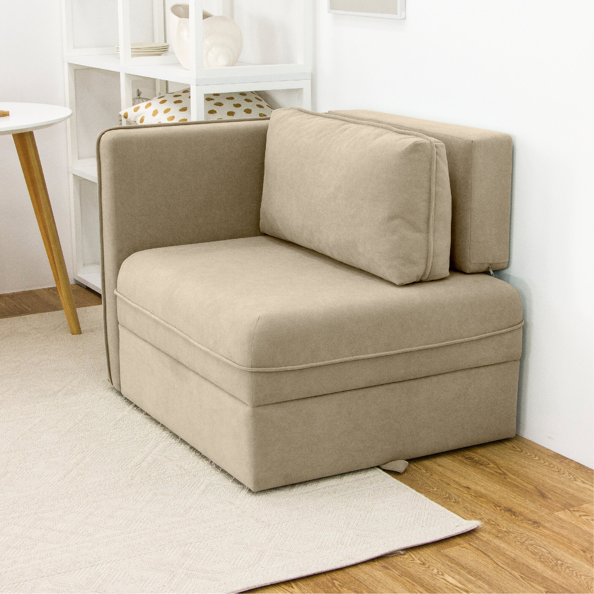 Диван-кровать KRASDIVAN Олаф 80х100 см, с ящиком для белья, велюр Бахрия 3 бежевый