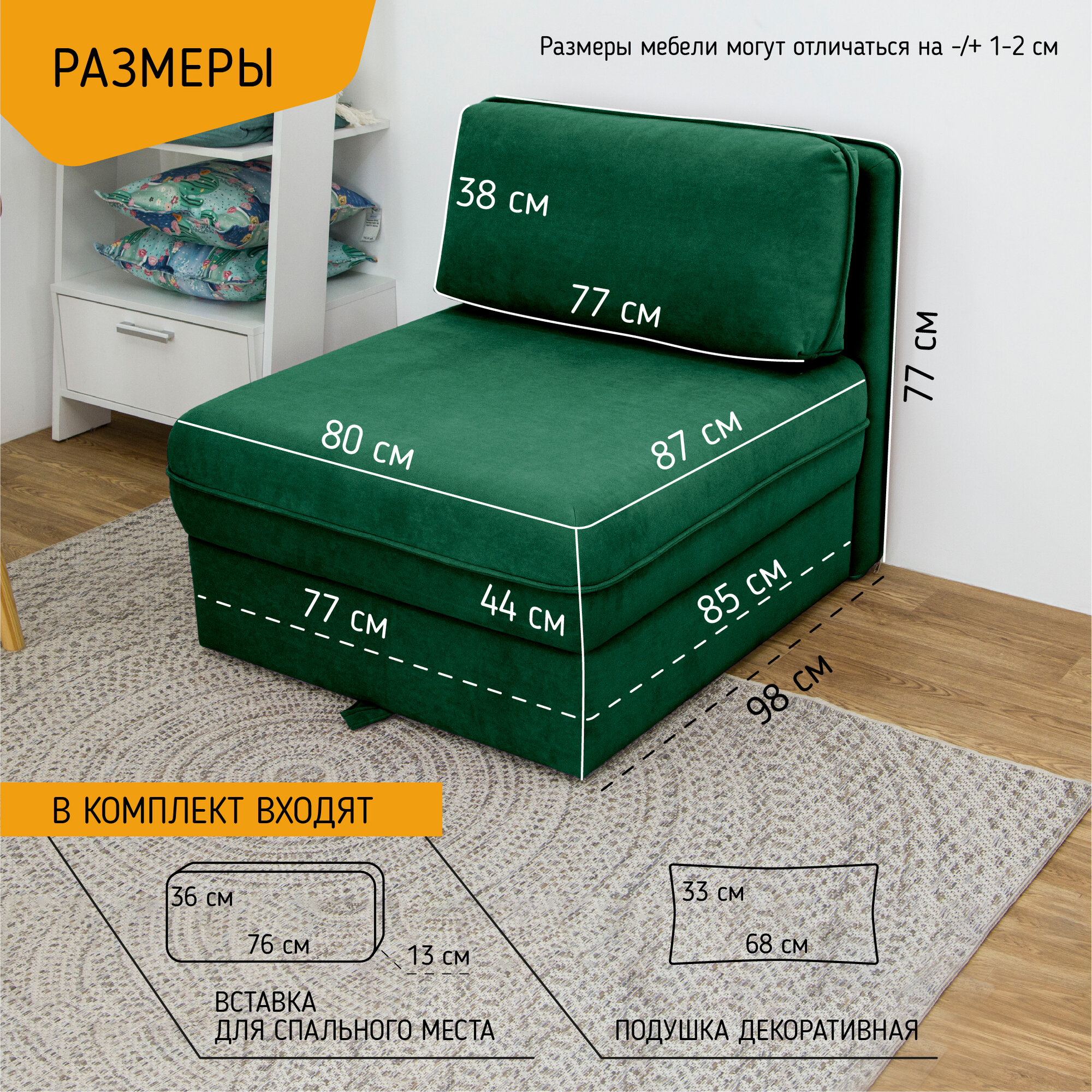 Диван-кровать KRASDIVAN Олаф 80х100 см, с ящиком для белья, велюр Domino 17 зеленый