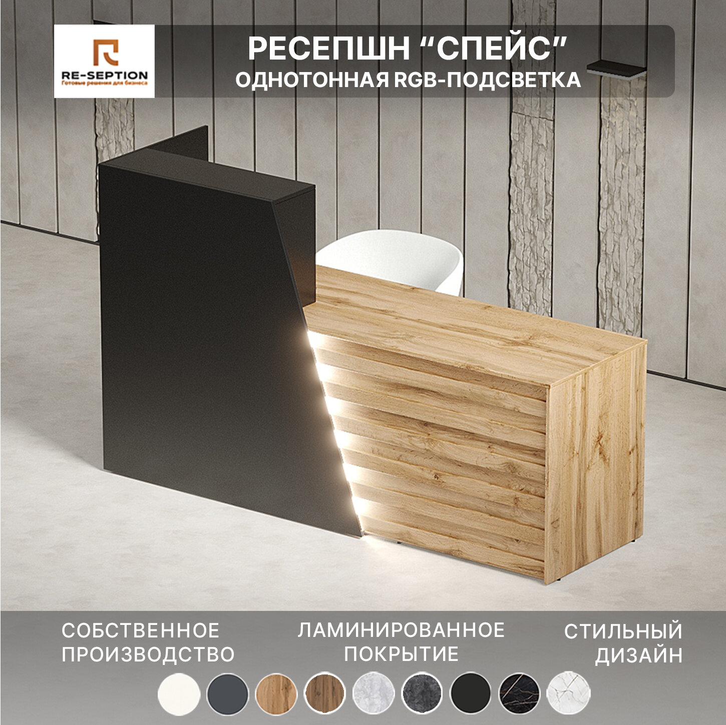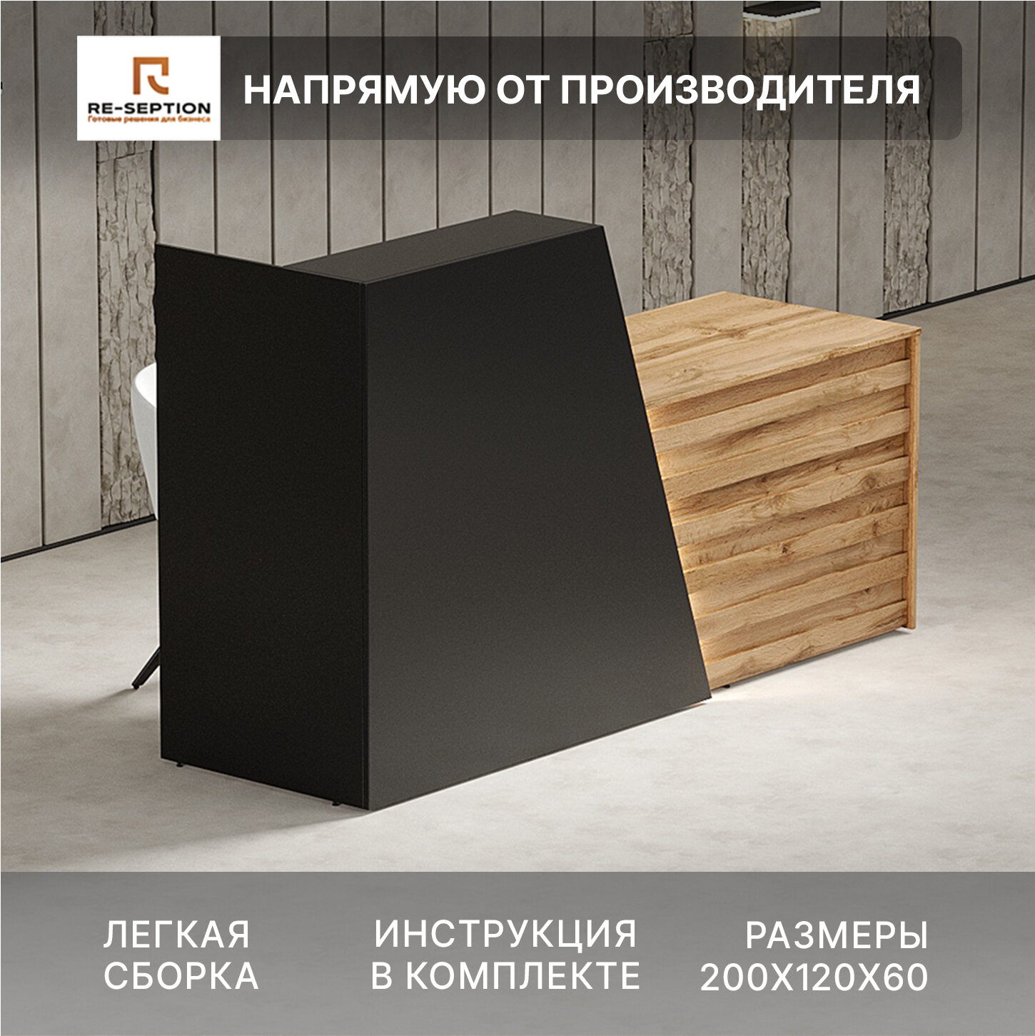 Купить Стойка Ресепшн "Спейс" Черная+Дуб Вотан / ЛДСП/ Для администратора/ Офиса/ Дизайнерская/Черный/ 200х120х60см/C Подсветкой