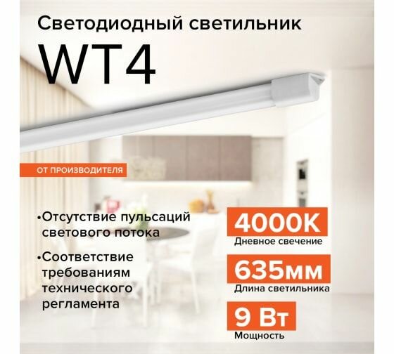 Светильник линейный Wolta IP65 9W(730lm) 4000K 4K 600x10x17 пласт (ДСП,ССП,ЛСП) WT4S9W интересное: