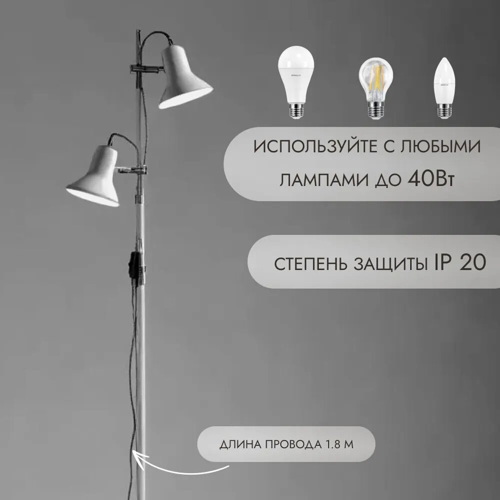 Торшер напольный светильник Camelion KD-432F, белый, E27, 40Вт, 2 лампы интересное: