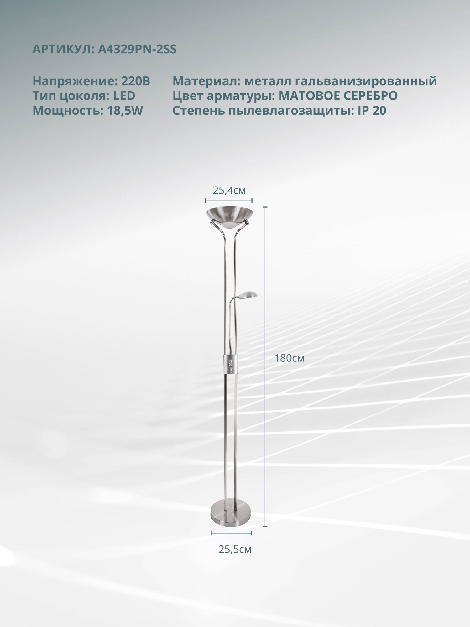 СохранитьТоршер напольный Arte Lamp DUETTO A4329PN-2SS LED серебристый интересное: